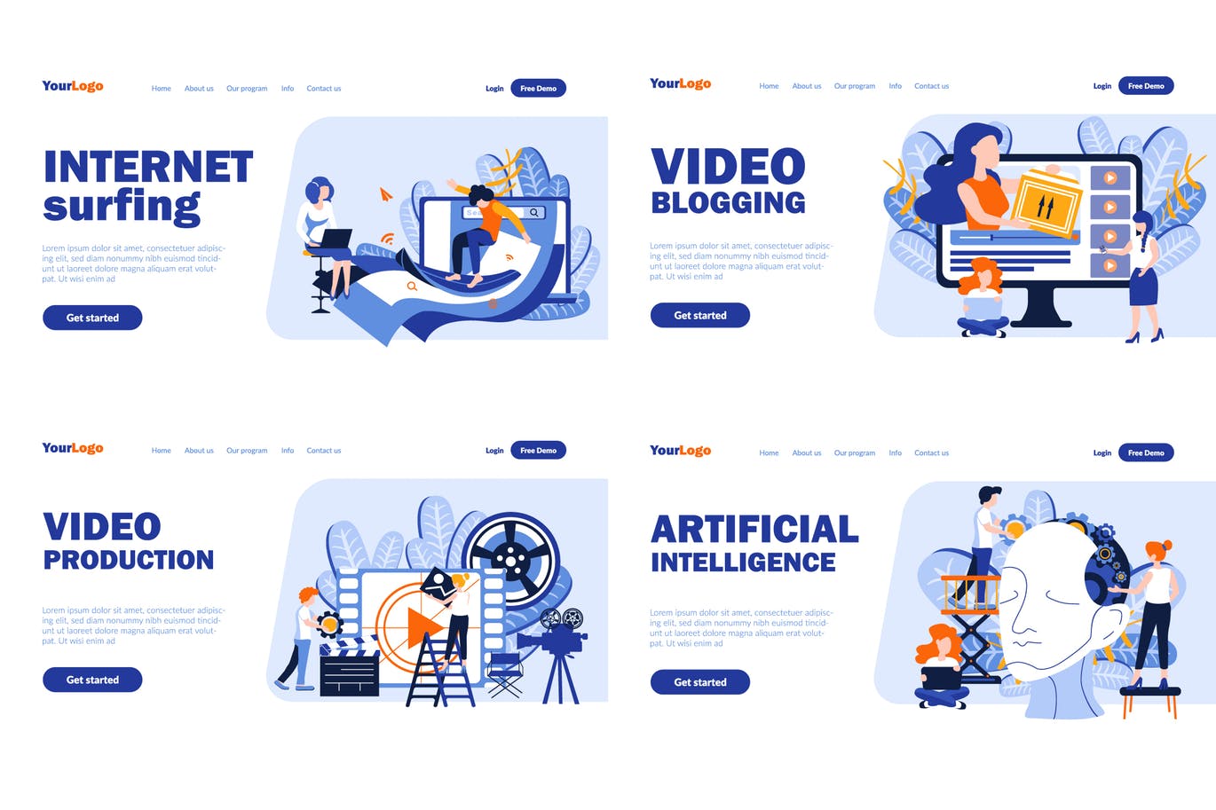 这次老不湿分享的是,时尚高端扁平化风格的网站着陆页详情页banner海报插画设计模板-2,现代平面设计概念装饰网站和移动网站开发的人性格。平面着陆页模板。向量例证