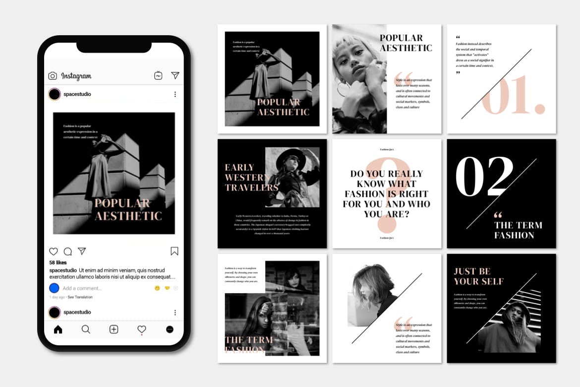 这次老不湿分享的是,时尚简约多用途的高品质优雅Instagram社交媒体banner海报设计模板,该模板包含9个完全可编辑和可自定义的instagram帖子/提要,这些帖子是在Sketch,Photoshop和Illustrator中设计的,脱颖而出。该工具包非常适合从事体育相关活动或运动的博客,时尚品牌,生活方式博客,杂志和Techno博客。