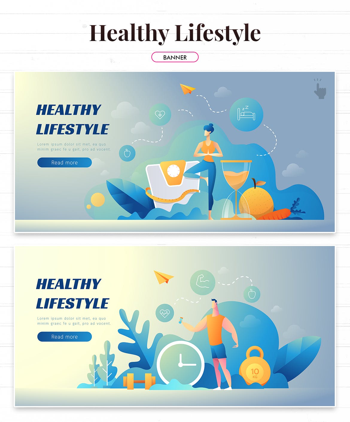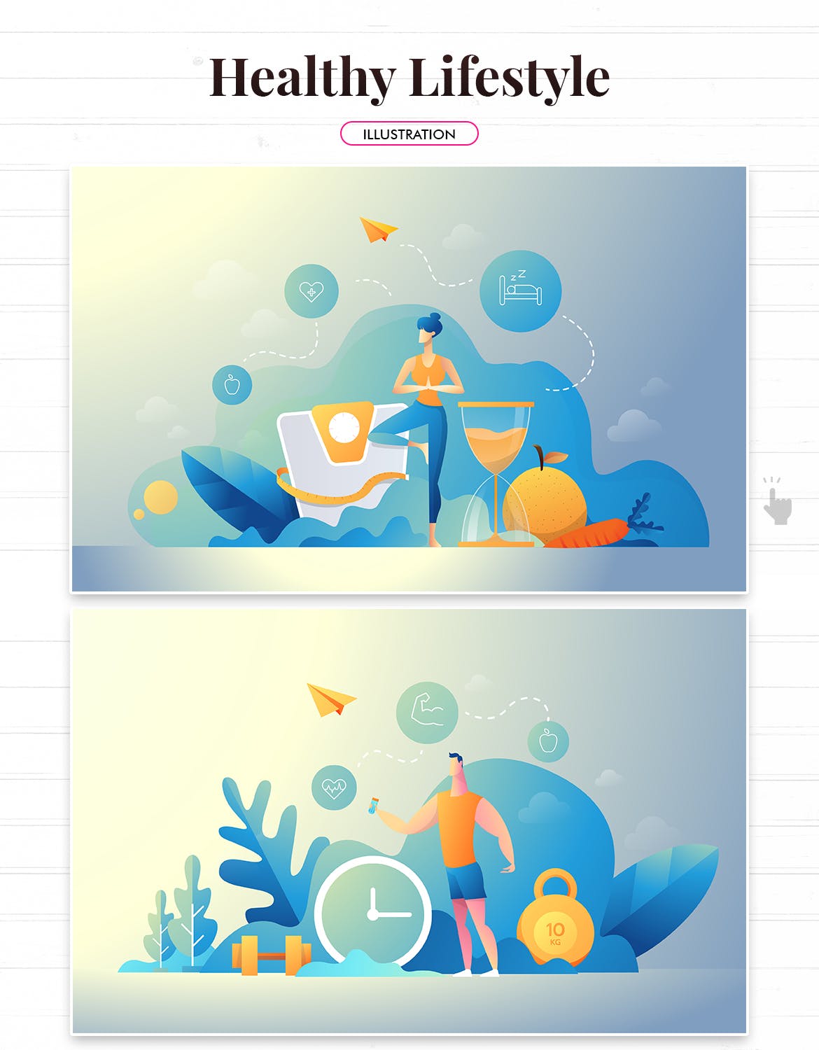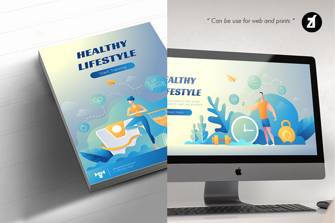 这次老不湿分享的是,时尚简约多用途的健康的生活方式图和布局海报插画着陆页设计模板,此包中的文件