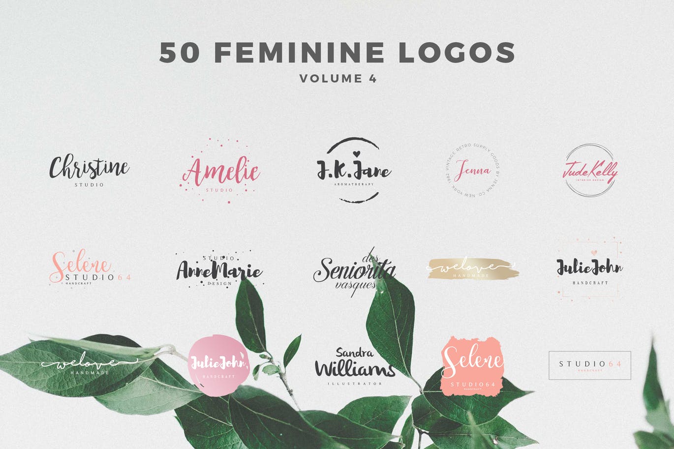 这次老不湿分享的是,50个时尚高端多用途的女性化风格的logo标志设计模板-4,可编辑的PSD文件(适用于Photoshop)可编辑的AI文件(用于Illustrator)可编辑的EPS文件