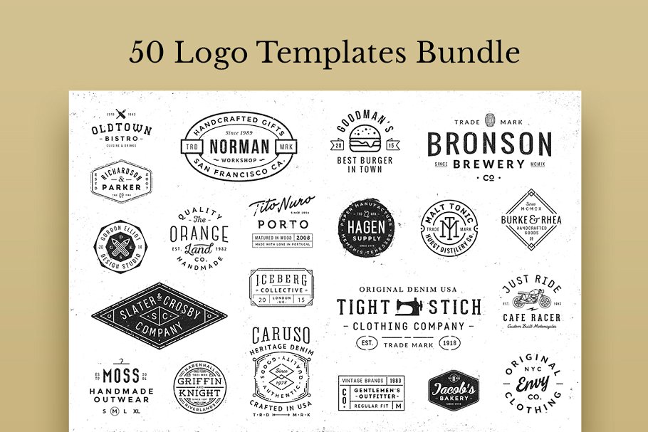 这个包包含50个矢量 logo模板,可以用于品牌项目、标签、服装设计、排版等。它们都是完全可编辑的,只包含免费字体!