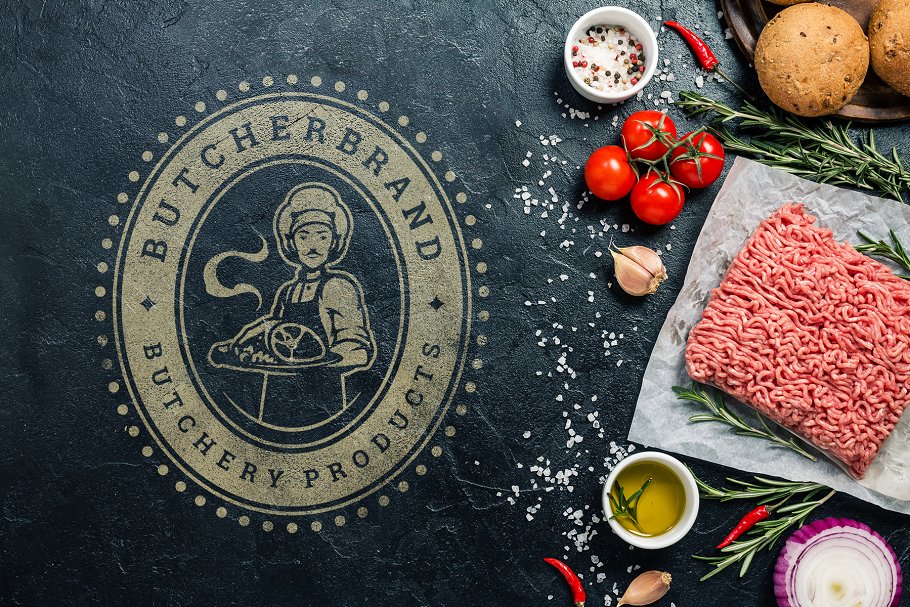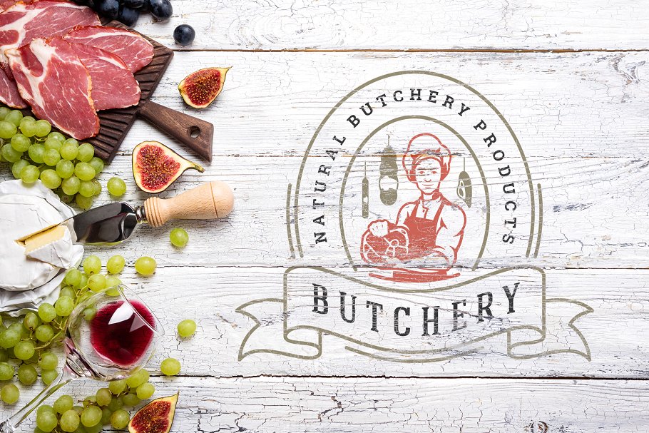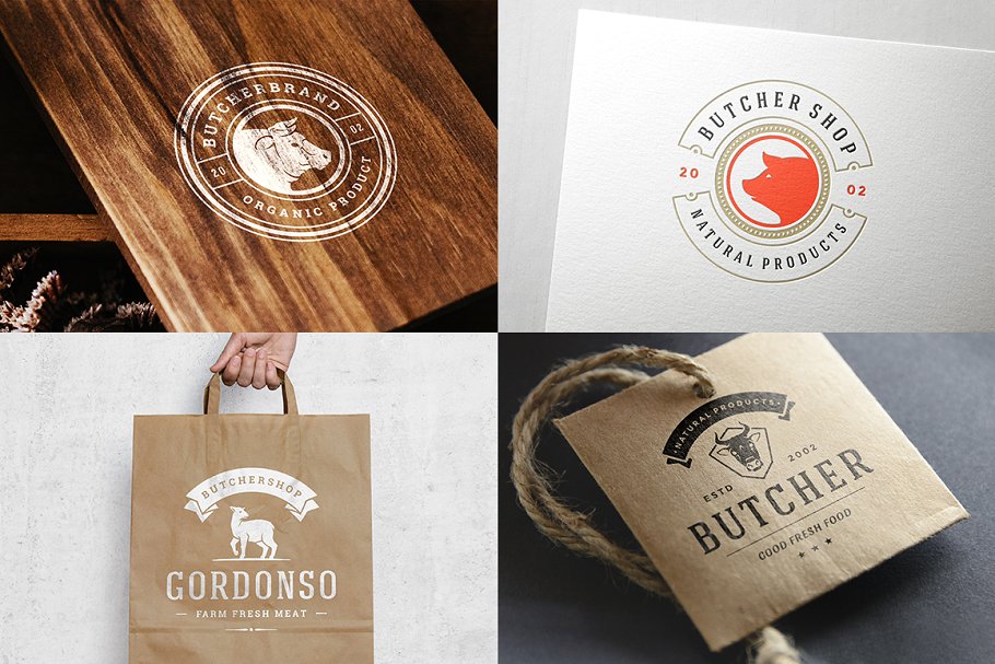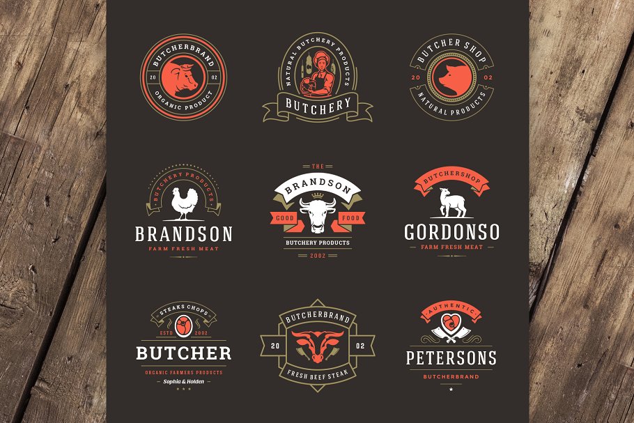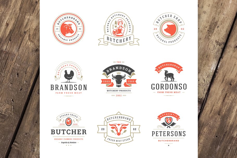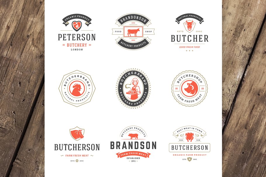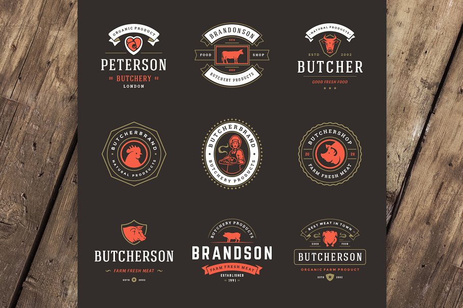 18 个肉类食品标准和徽章复古风格的设计 Volume 01.