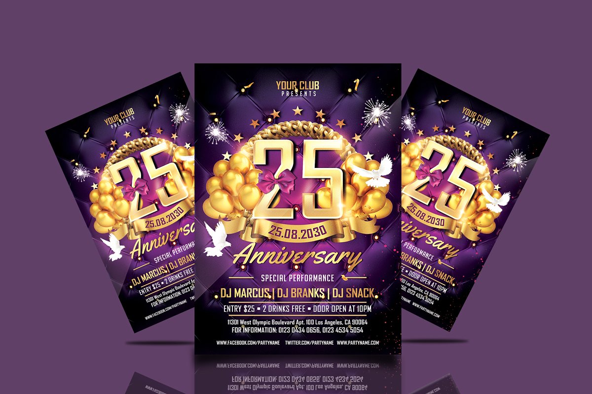 周年纪念邀请/传单模板。您可以将这个周年纪念模板用于公司周年纪念、企业聚会邀请、结婚纪念日、婚礼派对邀请、结婚纪念日、庆祝活动和其他相关的周年纪念邀请。完整的组织、分层和命名,以及完全和容易编辑,你可以快速简便地修改一切,颜色样式,排版。它在文件夹和图层中组织得很好。