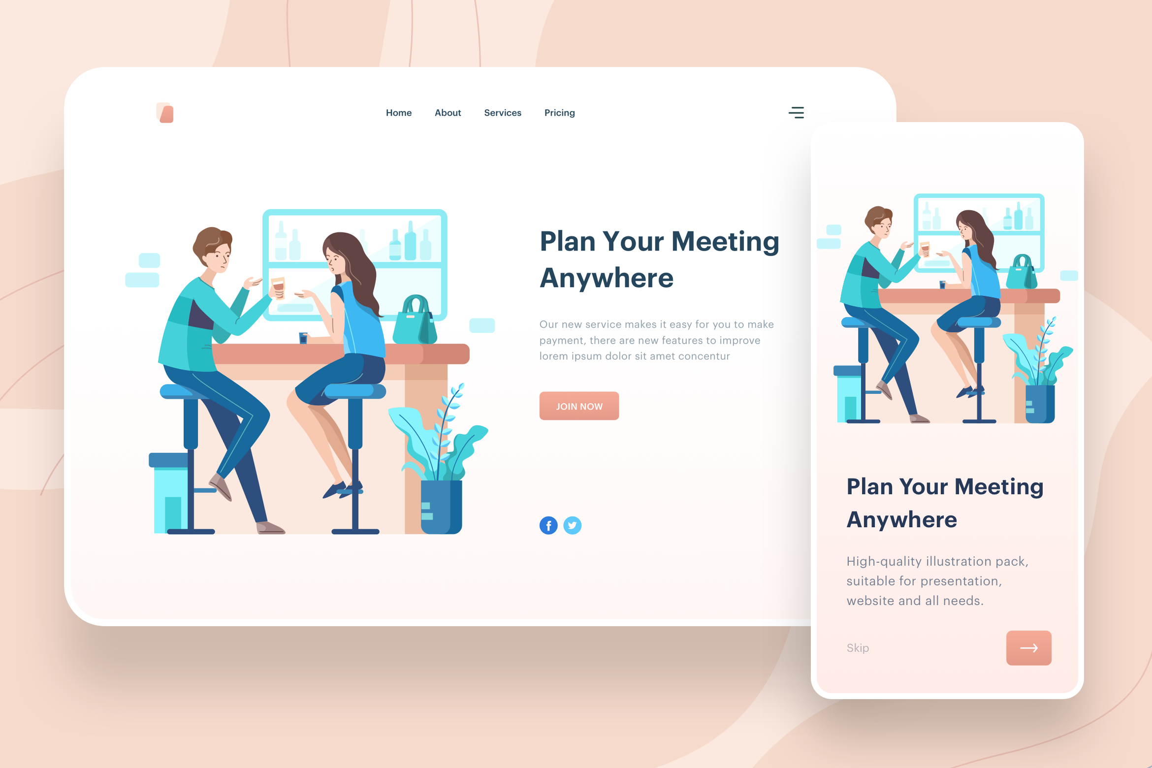 您可以将这些插图用于网络和移动应用。此外,您可以下载我们的其他插图,并使用不同的背景或页面来创建新的东西!