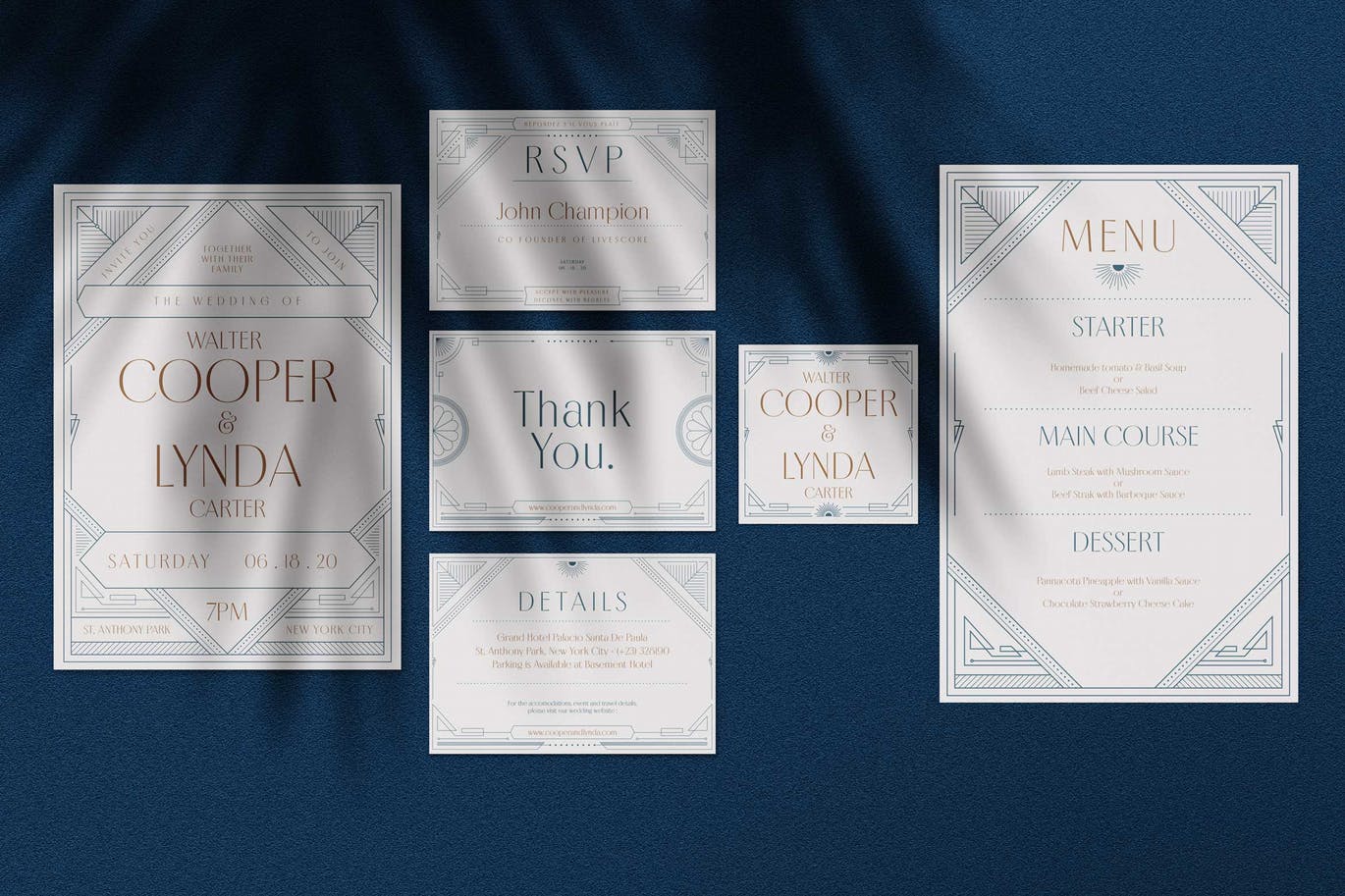 这次老不湿分享的是,时尚简约高端欧式复古art-deco艺术房地产建筑风格婚礼邀请函海报设计模板,艺术装饰婚礼邀请模板包。附带3个文件:Adobe Illustrator,EPS和PSD文件。