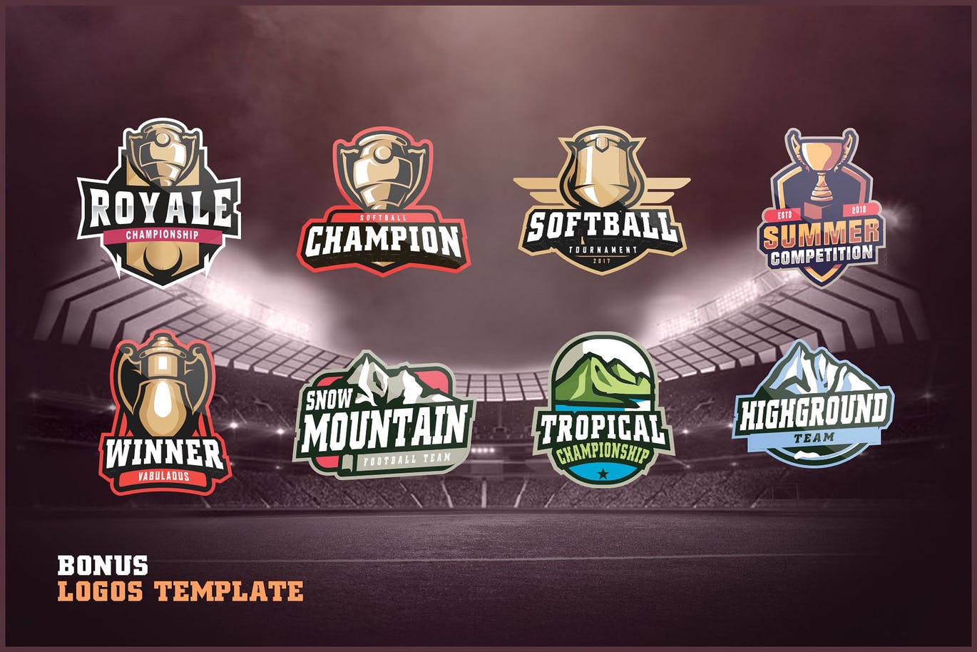 这次老不湿分享的是,多用途的体育运动赛事矢量logo标志设计大集合,48徽标模板,34吉祥物,东西,装饰品,15色带,文字样式,图层样式
