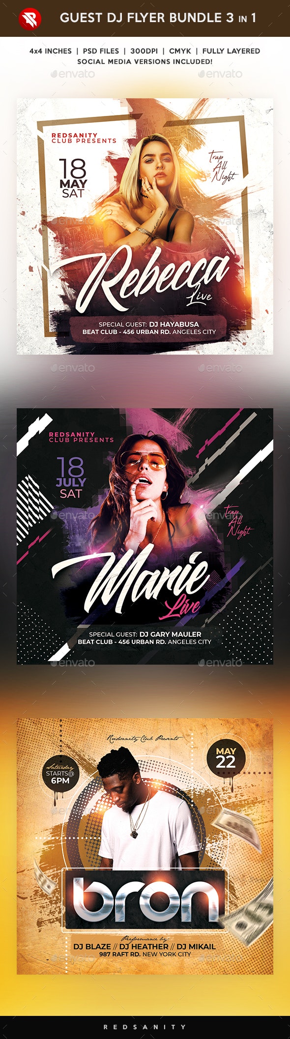 此套装内含3款十分出色的传单,所有传单都有单独的社交媒体文件。专门为你的俱乐部、音乐会等派对活动而设计。Instagram模板 – 1080×1080像素,标准尺寸大小。示例中使用的图片不包括在文件中,仅供参考作用。