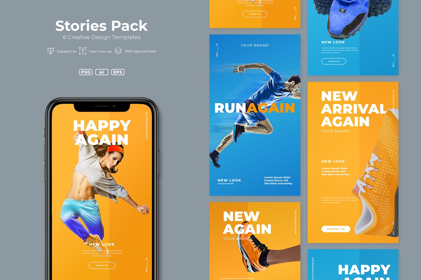 这次老不湿分享的是,时尚高端简约大气的社交媒体banner海报着陆页欢迎页设计模板v.18,6种不同的设计