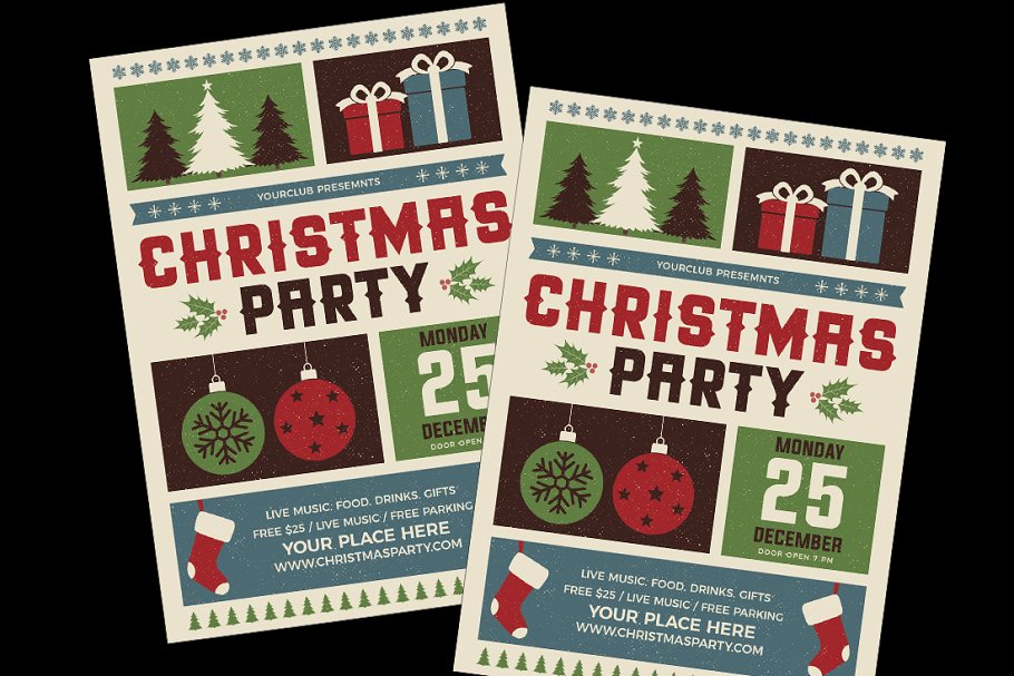 复古圣诞派对宣传单