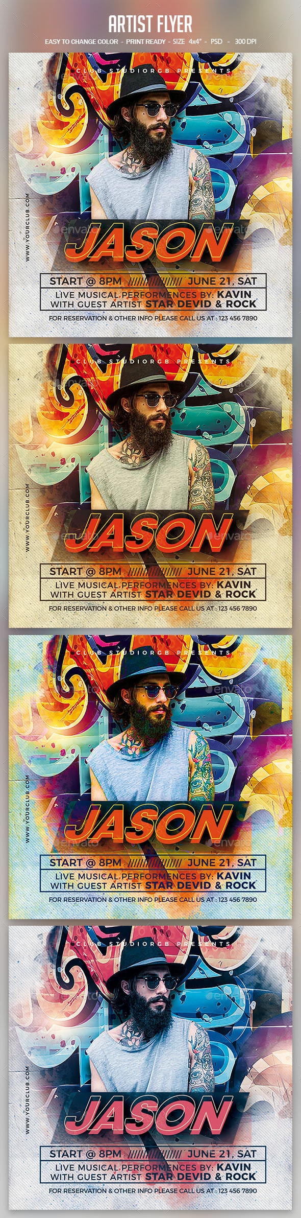 独特的派对传单,为您的下一个派对邀请设计。包括一个完全分层、重命名的分组PSD文件。
