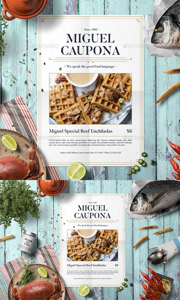 这个餐厅推广促销广告传单非常易于使用。一个组织良好,重命名的图层,它可以帮助您在编辑菜单时获得最佳效果!完全可编辑,易于定制!