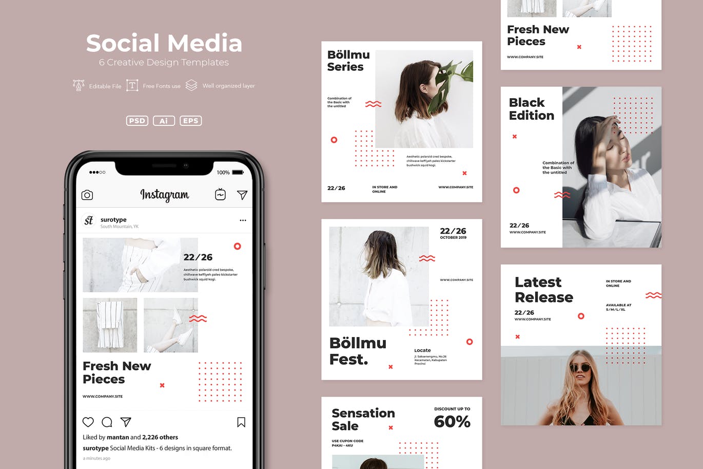 这次老不湿分享的是,高品质的时尚简约新孟菲斯风格ADL社交媒体banner海报设计模板 V.22,6种不同的设计和方形布局。适用于Instagram,Facebook,Twitter等