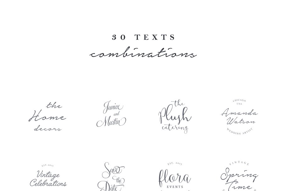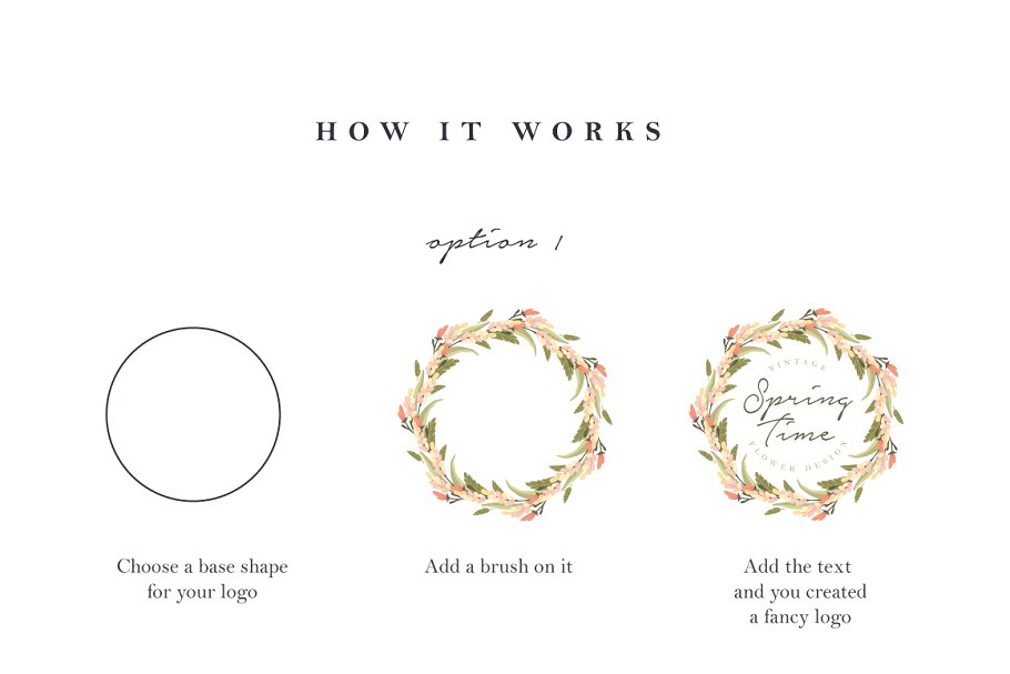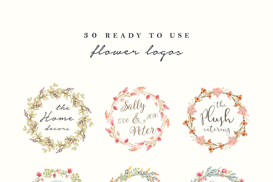 有了这个Logo花卉套装,你可以在几分钟内创造出令人惊叹的和原创的花卉标识、花环、桂冠、边框、框架、婚礼打印包和其他设计,让你的客户大吃一惊。