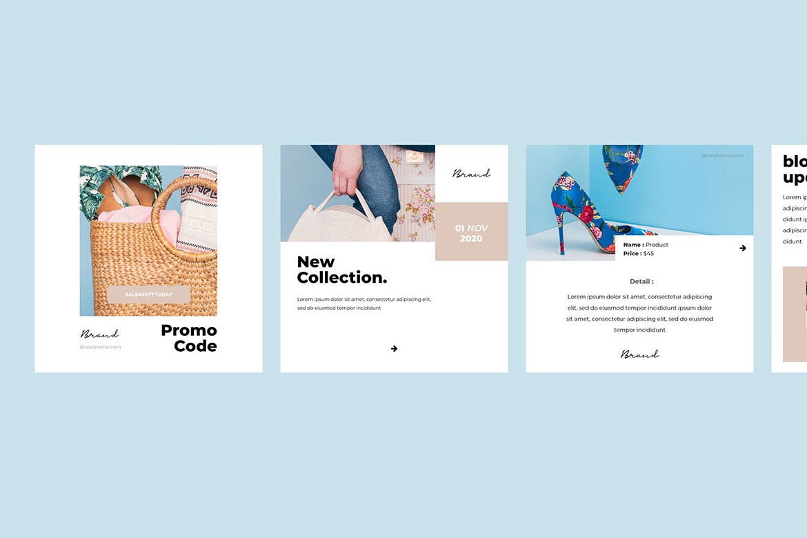 这次老不湿分享的是,简约时尚高端多用途的高品质Instagram社交媒体banner海报设计模板 vol.4,附带6个随时可用的Instagram帖子模板,你可以完全编辑模板。颜色,排版和所有其他元素可根据您的需求进行定制。它适用于任何类型的业务。这个模板的最小外观将使它保持这种长期趋势。-
