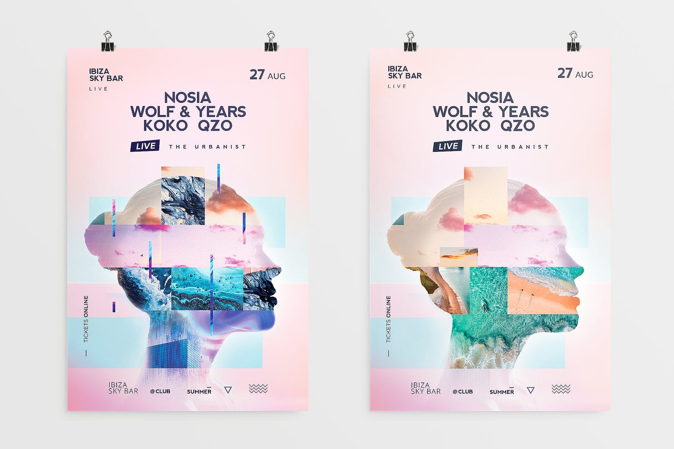 这次老不湿分享的是,时尚高端简约艺术双重曝光风格的夏季夏天海洋宣传单海报设计模板,夏天传单海报模板非常适合海滩派对,夏日聚会,泳池派对,海滩酒吧,俱乐部,电子邮件模板,夏季促销传单,餐厅海滩,海边派对,酒吧和DJ活动,热带岛屿主题派对,或只是适合常规的异国情调的夏季节日。