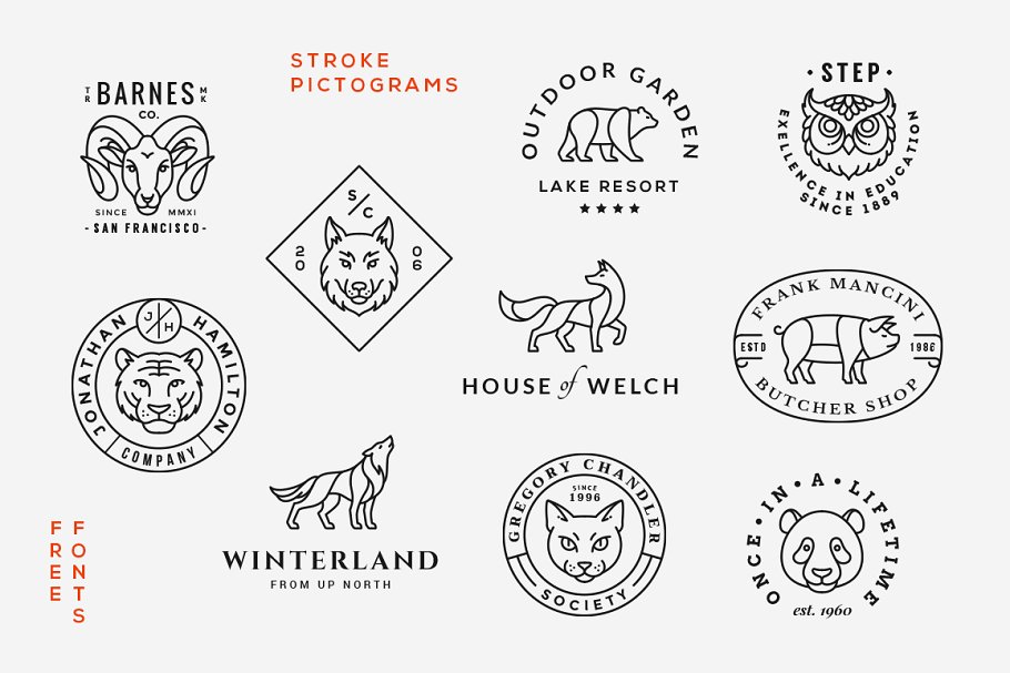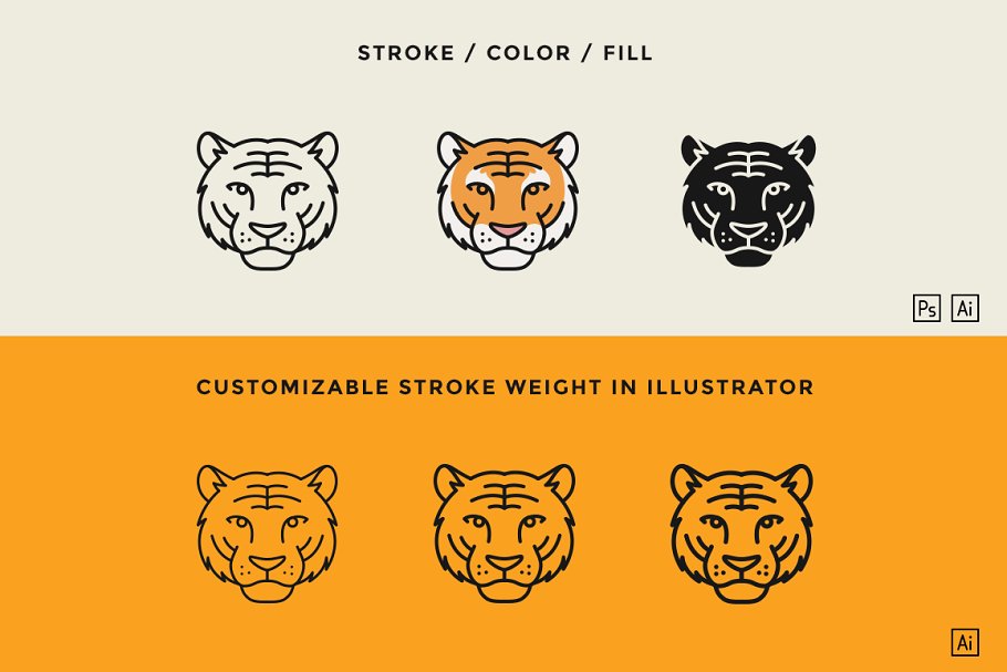 - 在Illustrator中可定制的笔划重量(用于动物标记)