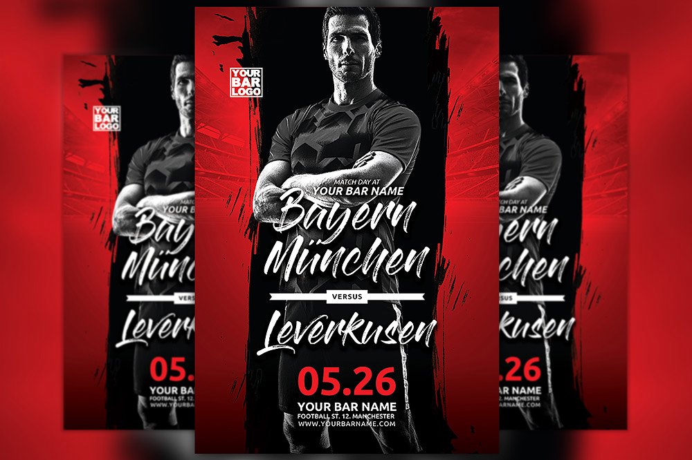 足球队传单模板的设计,以促进您的下一个足球运动比赛、比赛日和现场观看酒吧活动。这个打印就绪的高级传单模板包括一个300 dpi打印就绪的CMYK文件。所有的主要元素都是可编辑和可定制的。您可以通过文本工具编辑主文本,您可以通过智能对象替换模型图像,在您的图层菜单中右键单击edit smart object。 传单是完全分层和组织,以保持定制非常简单!