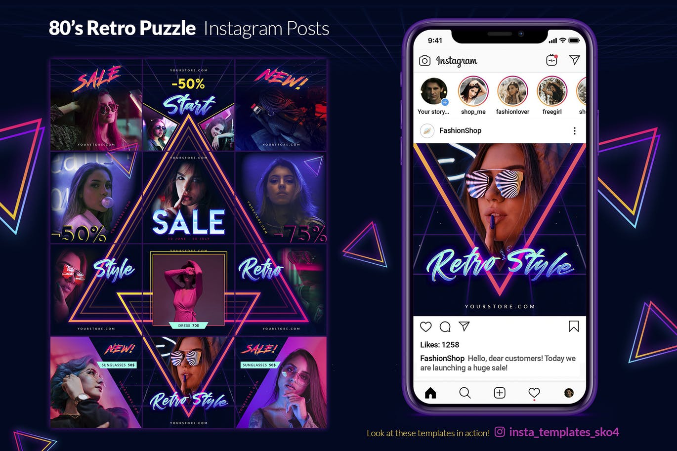 这次老不湿分享的是,时尚绚丽80年代的复古拼图 – Instagram帖子社交媒体banner创意海报宣传单模板,使用这个时尚模板专业地开始你的instagram职业生涯!