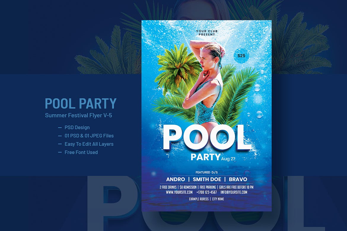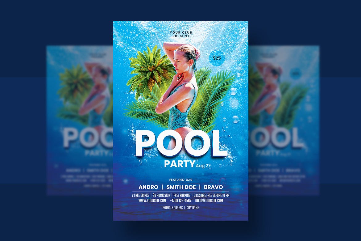 这次老不湿分享的是,时尚绚丽多用途的高品质清凉夏日泳池派对party海报设计模板,特征: