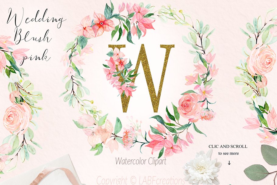 这是一个美丽浪漫别致,优雅的女性色彩与迷人的金色手绘花卉水彩剪辑艺术,适合制作卡片模板设计、logo设计、博客、邀请函、数字项目、网站、剪贴簿、婚礼请柬等。