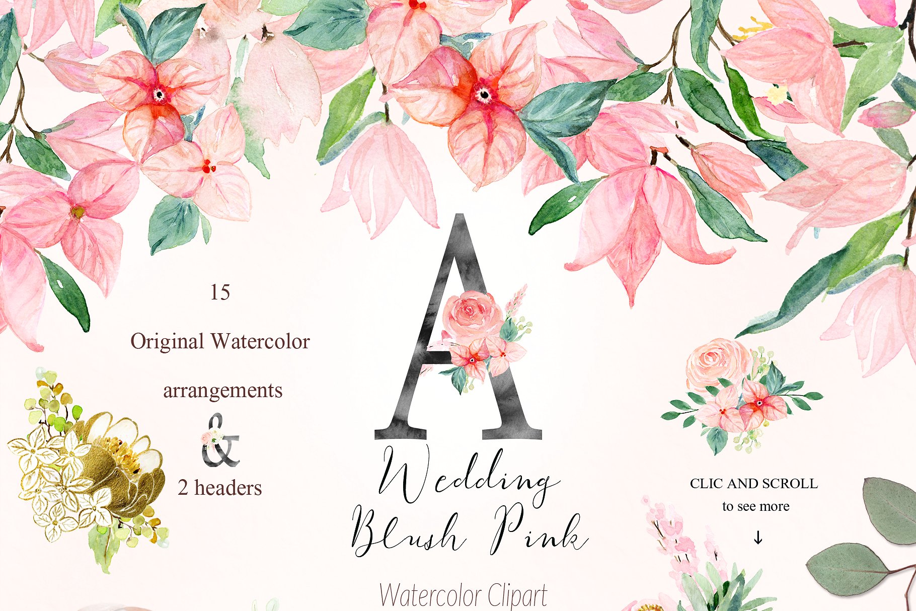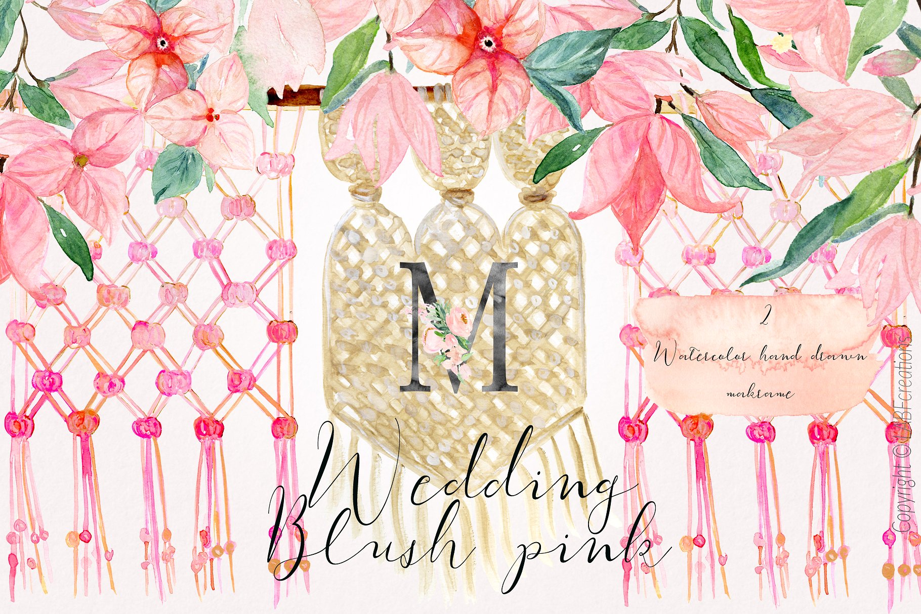 腮红粉色叶子花属的婚礼。水彩花卉。大设计师clipart设计工具包。