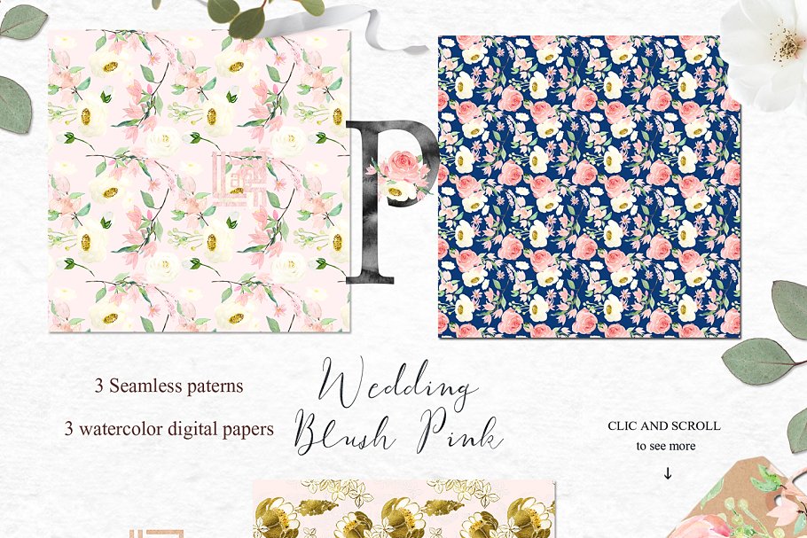 每个元素都被涂在水彩纸上。在Photoshop或在线编辑器等编辑软件中,大小可以被控制。