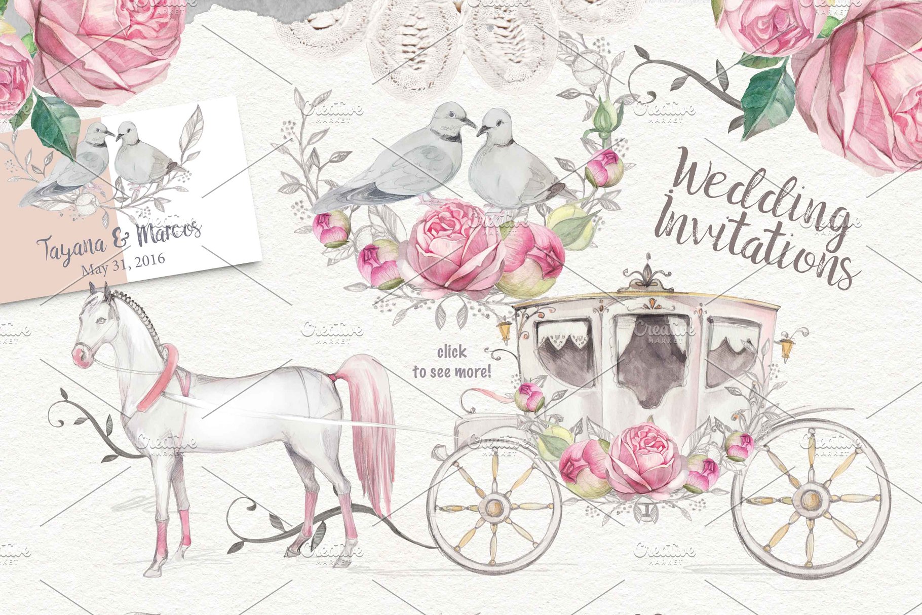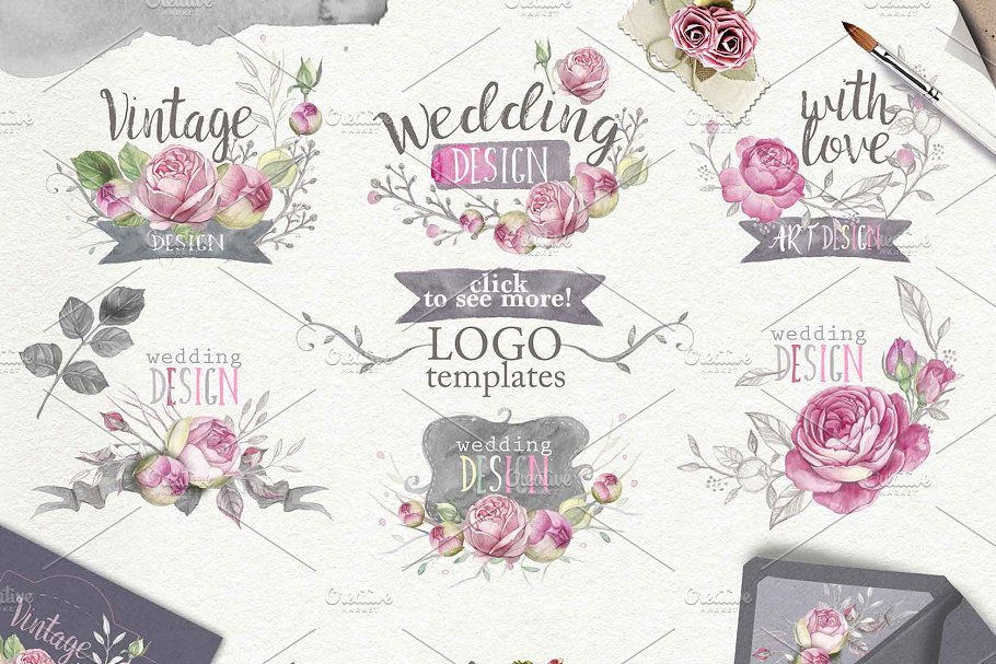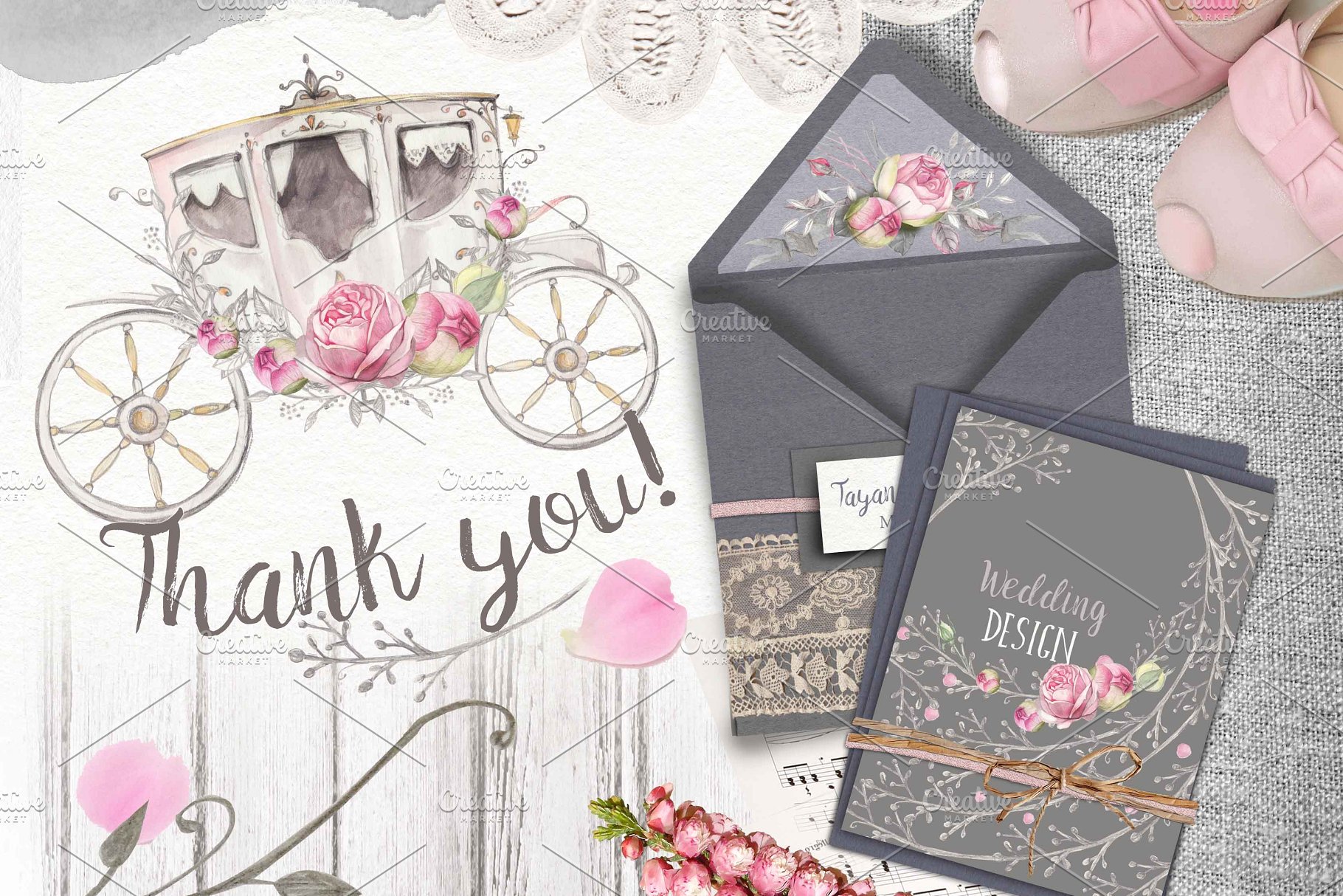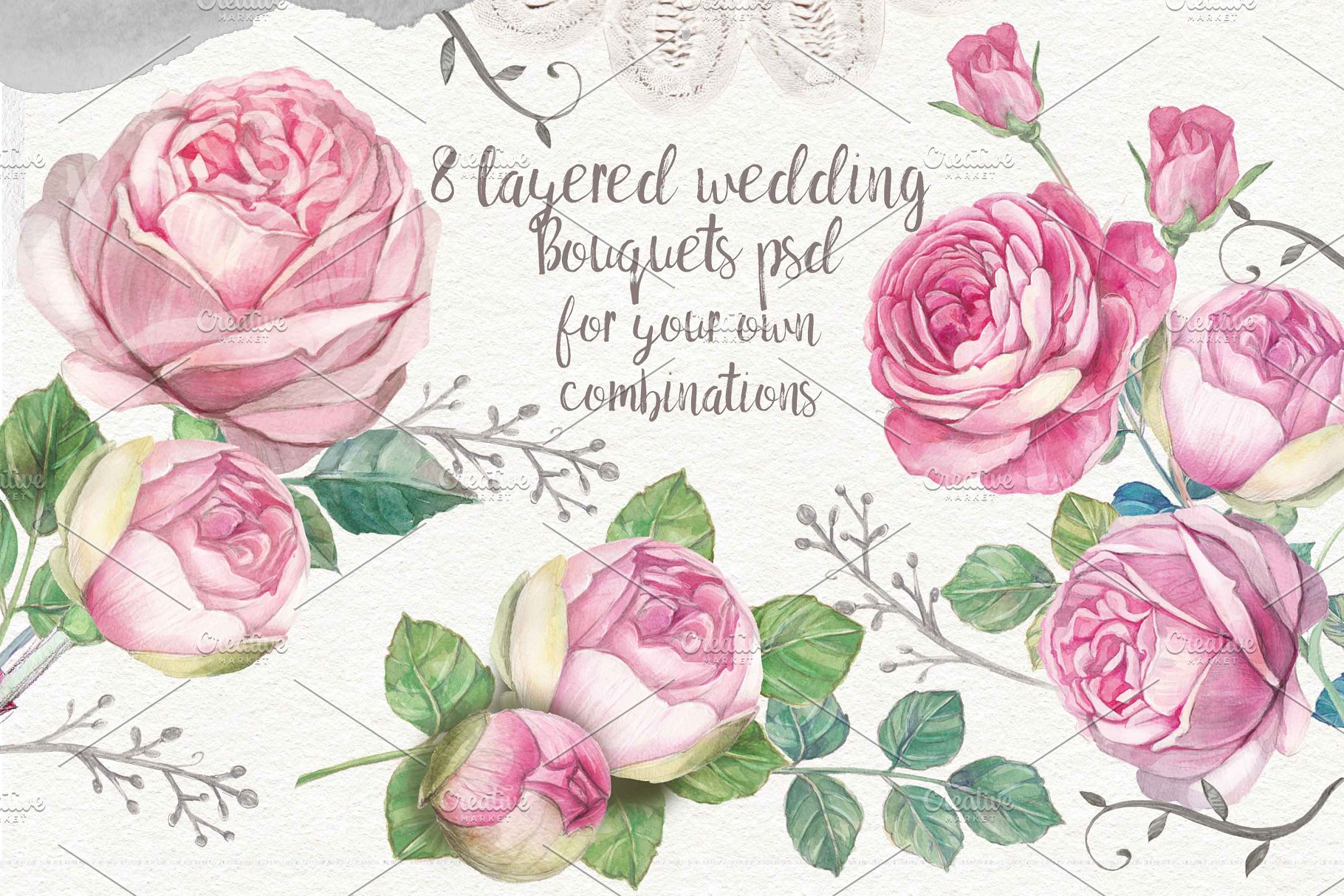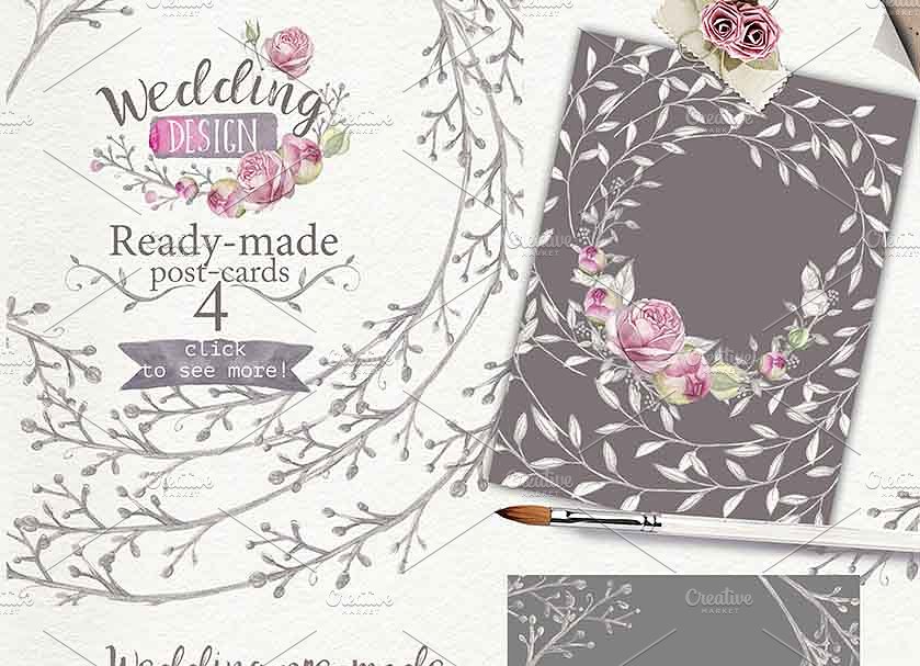 超过40 PNG透明元素,22层PSD水彩婚礼请柬,高分辨率。