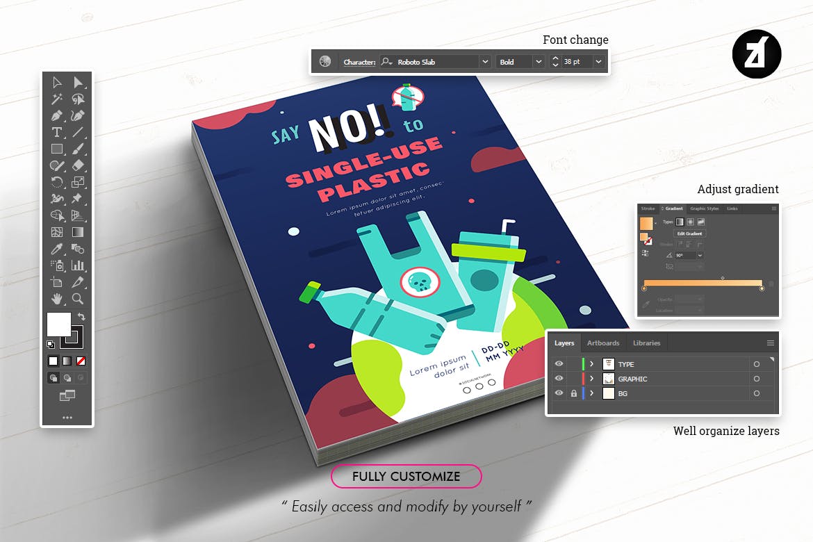 这次分享的是,时尚有创意的无塑料运动环保主题海报模板宣传海报下载[Ai,EPS],这套海报适合做个性时尚的环保宣传主题设计。