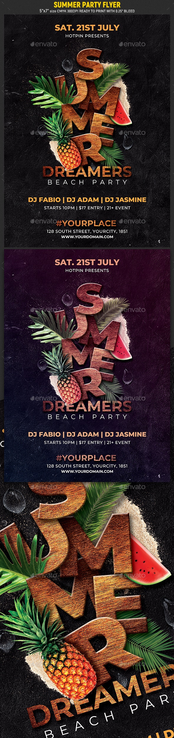 夏季传单模板是非常现代的PSD传单,将是您的俱乐部聚会或海滩派对的完美邀请设计!所有元素都在单独的图层中,文本完全可编辑!