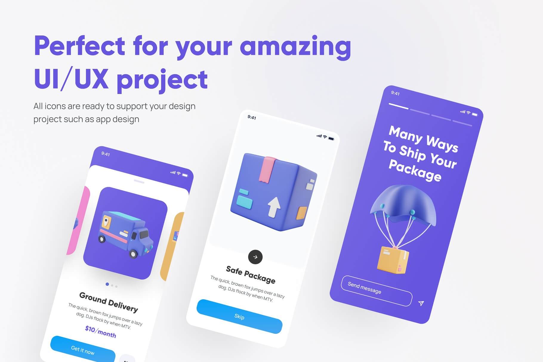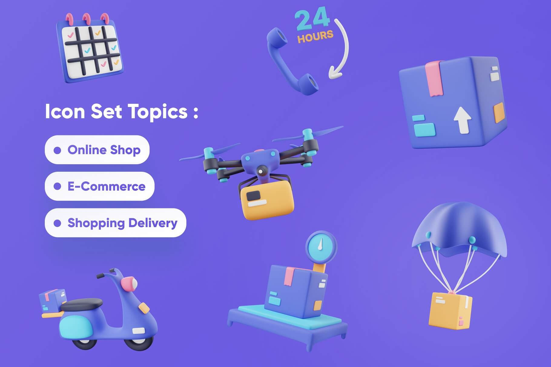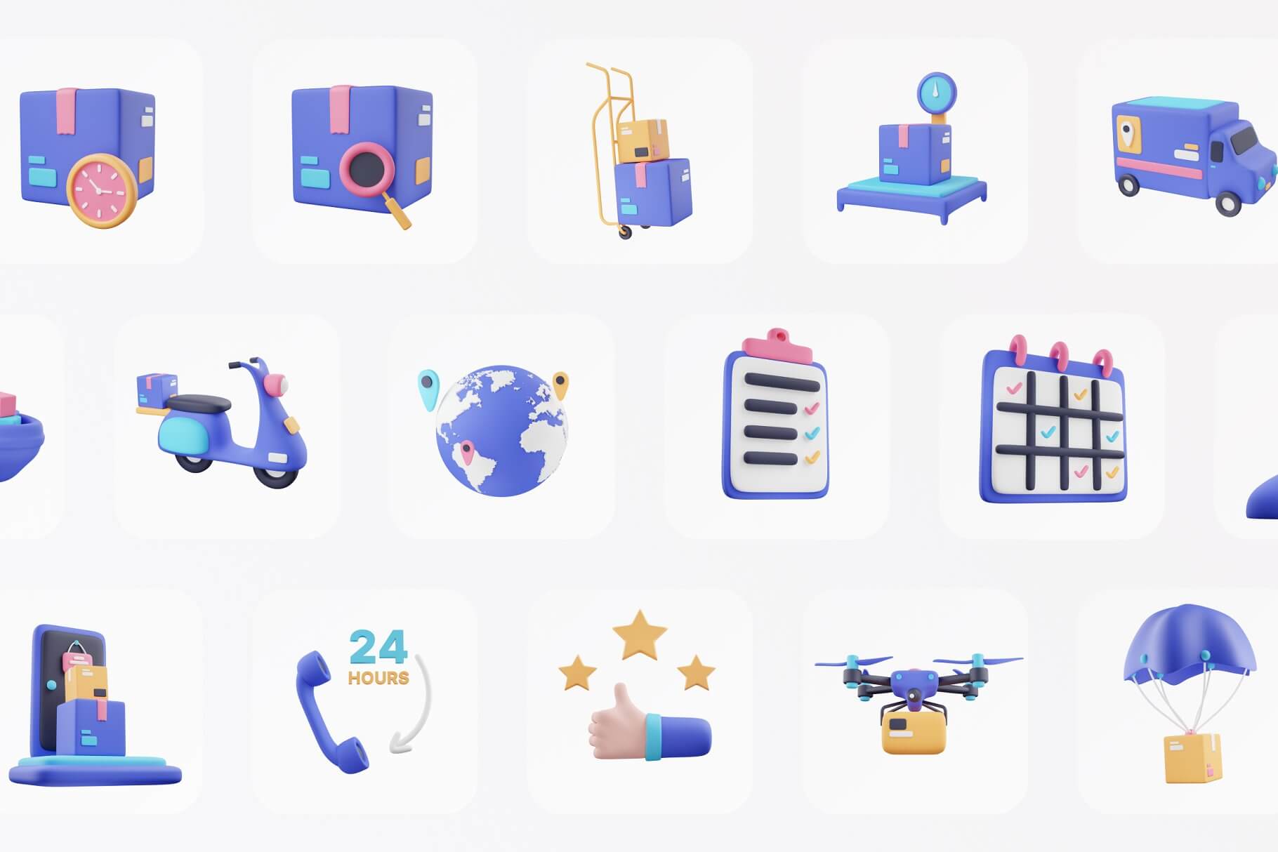 这是一组适用于任何在线商店交付的自定义 3D 图标。使用 3D 图标让您的下一个产品和项目更加精彩。