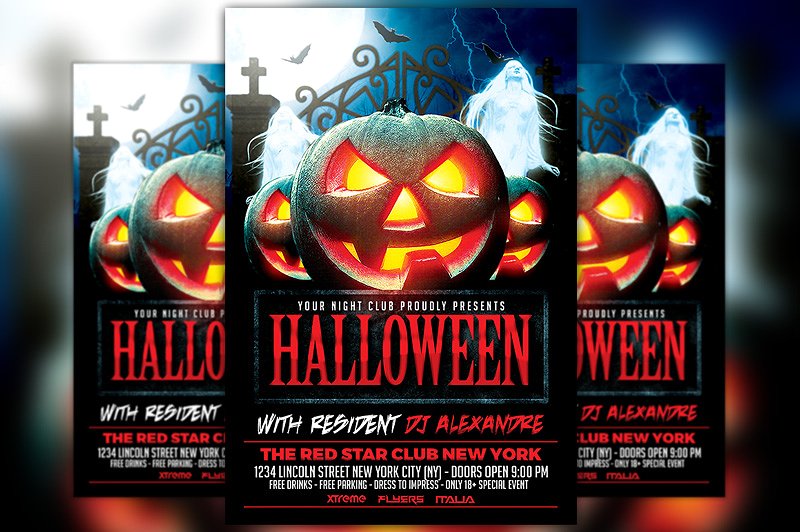 万圣节夜总会派对传单模板的设计,以促进您的下一个万圣节和化装舞会和俱乐部活动。这个打印就绪的高级传单模板包括一个300 dpi打印就绪的CMYK文件。所有的主要元素都是可编辑和可定制的。您可以通过文本工具编辑主文本,您可以通过智能对象替换模型图像,在您的图层菜单中右键单击edit smart object。传单是完全分层和组织,以保持定制非常简单!