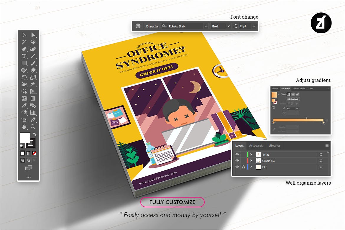 办公室综合症图形模板这个包是由充满激情的团队的新人完美制作的。