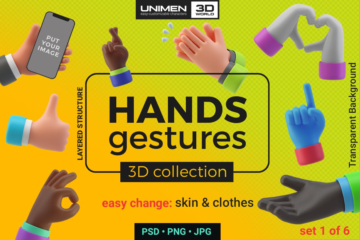 手势3D是以时尚友好有趣的3D风格完成的手势集合。