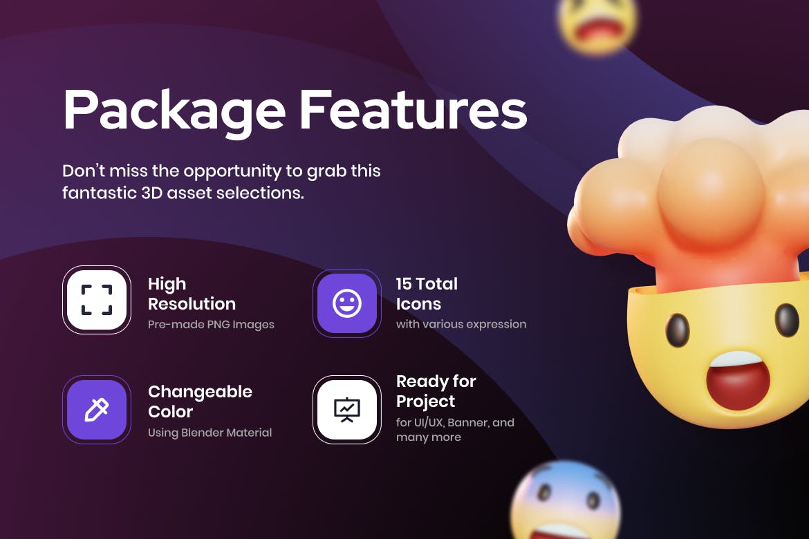 **3D表情包**通常用于任何需要知道所有内容位置的项目。最好的部分是什么?这个3D产品资产可以随时使用,可以在blender软件中定制颜色,并且有一个高分辨率的渲染文件,可以作为一个突出的插图支持您的项目,例如登录页项目、移动应用程序项目、Flyer项目或其他品牌项目。您可以从这个新的3D资产中获得一些好处。立即创作你的精彩作品!
