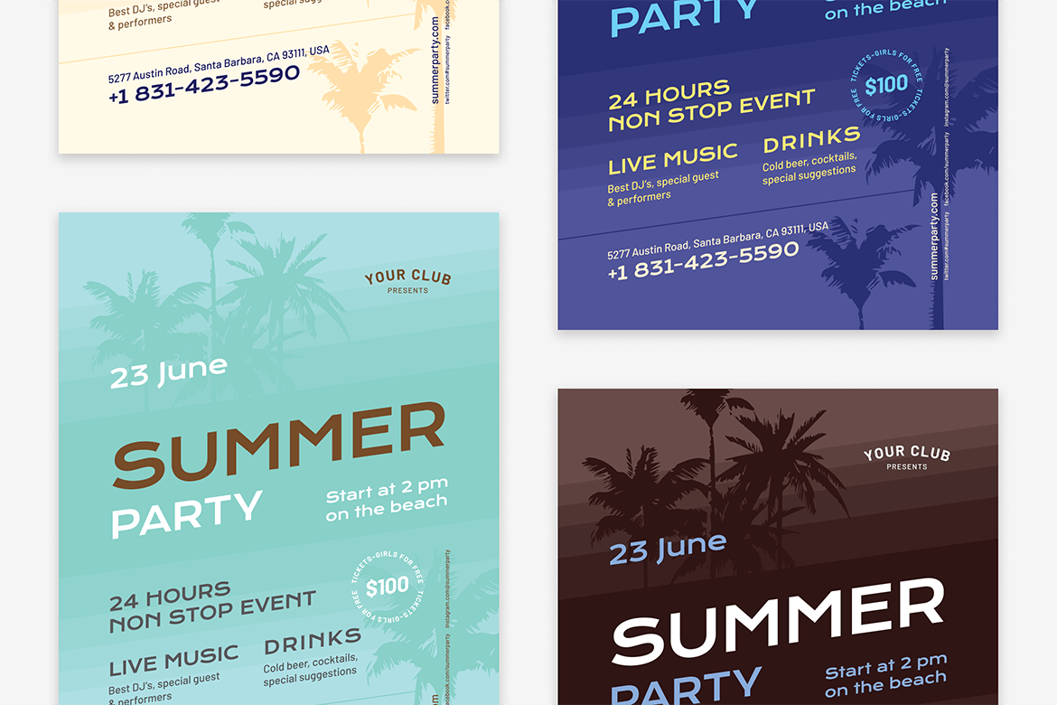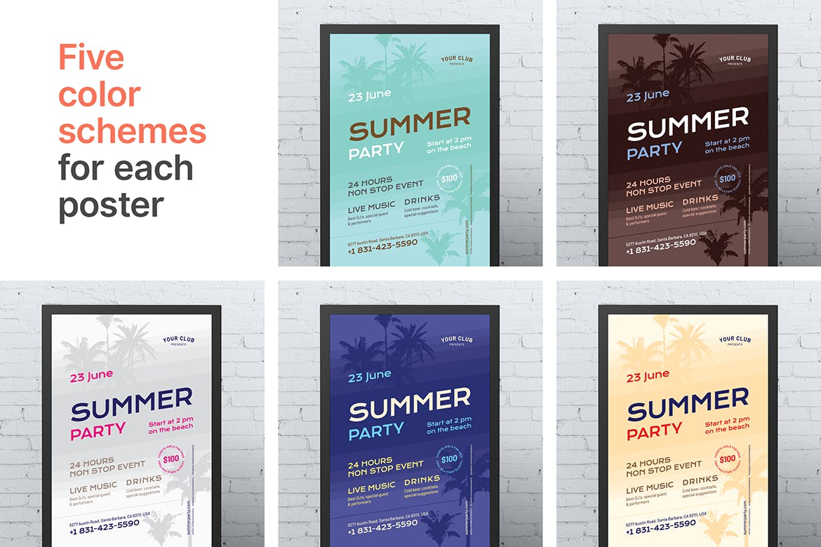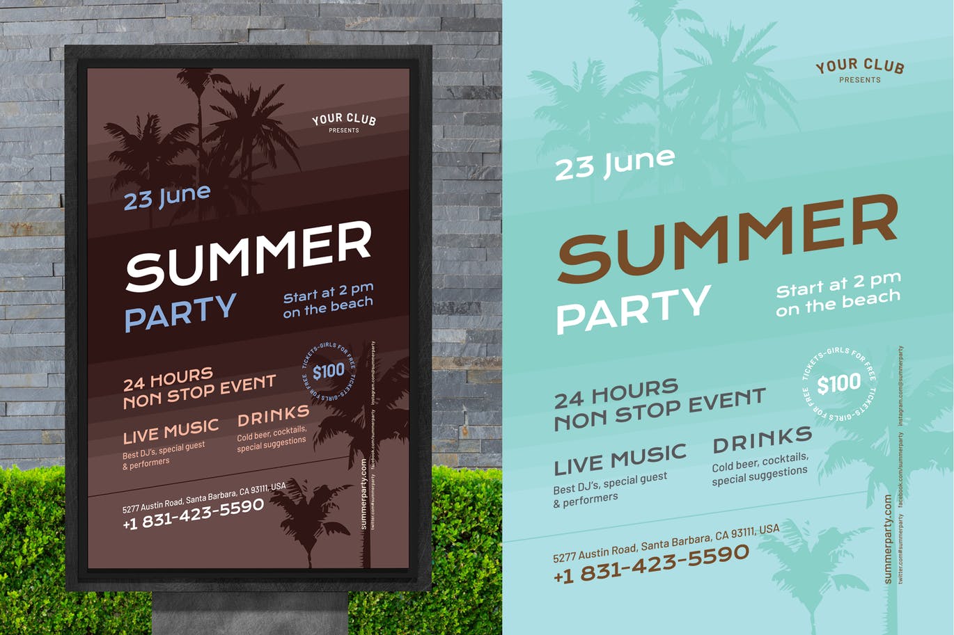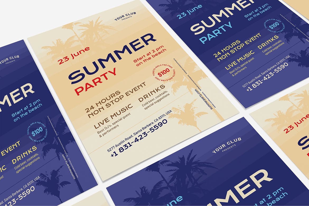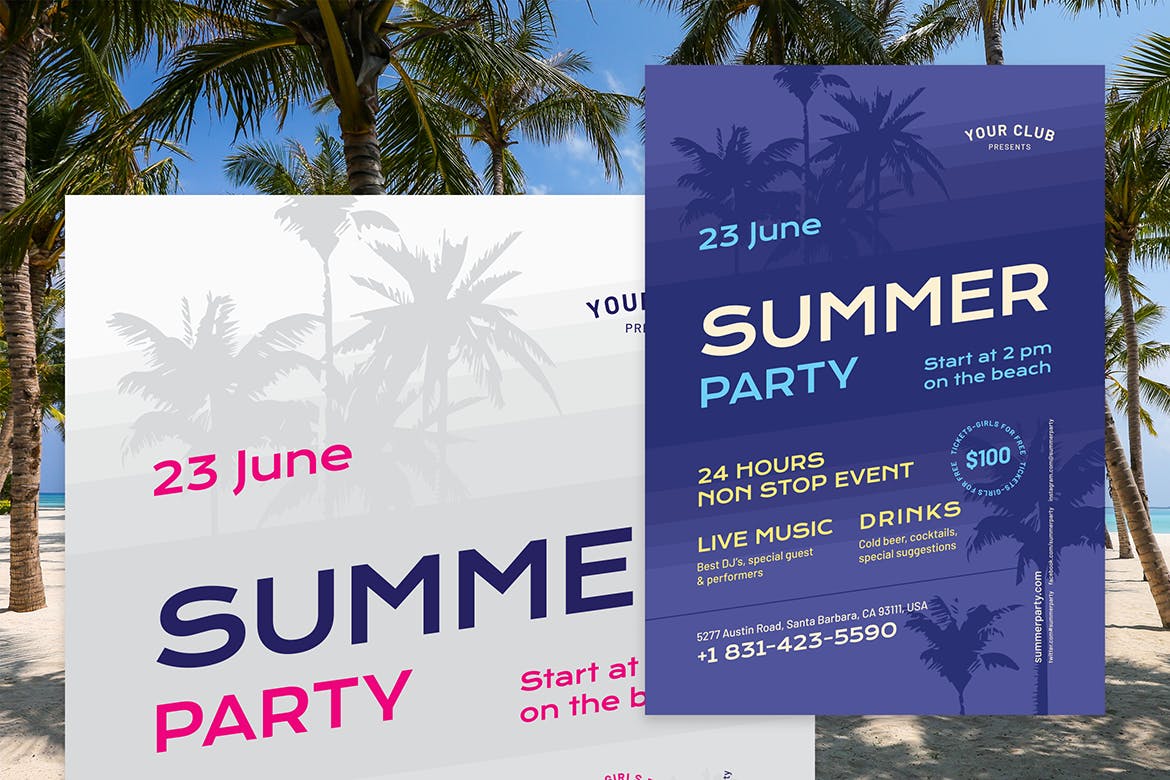 这次老不湿分享的是,时尚高端简约多用途的高品质夏天夏季渡假旅游夏季传单海报设计模板集合#4,通用,多用途和可变矢量模板。可用于任何促销目的。非常适合举办露天/每周俱乐部派对,音乐会,夏季音乐节等音乐活动。