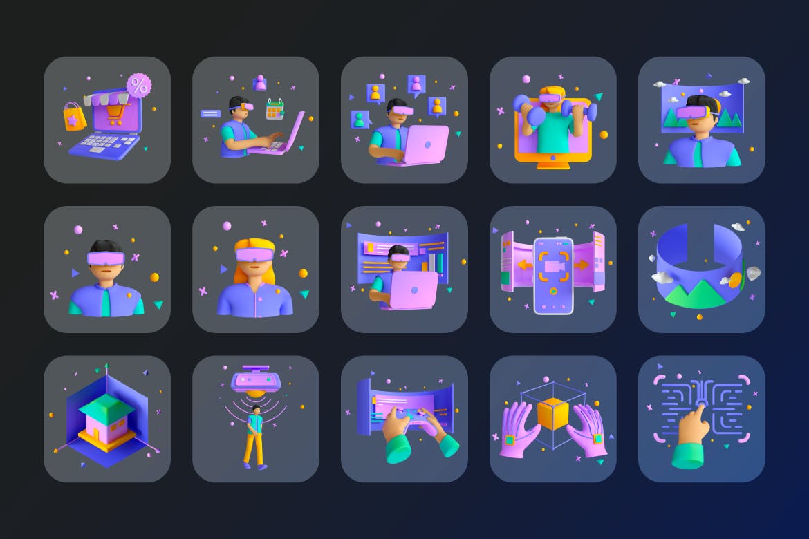 这次老不湿分享的是,高品质的时尚高端3D立体NFT图标插画大集合-FIG, PSD, PNG,C4D,图标集包括: