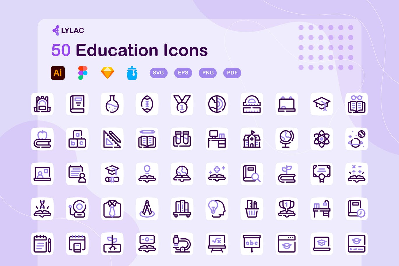 文件包括:AI、Figma、Sketch、Iconjar、SVG、EPS、PNG、PDF
