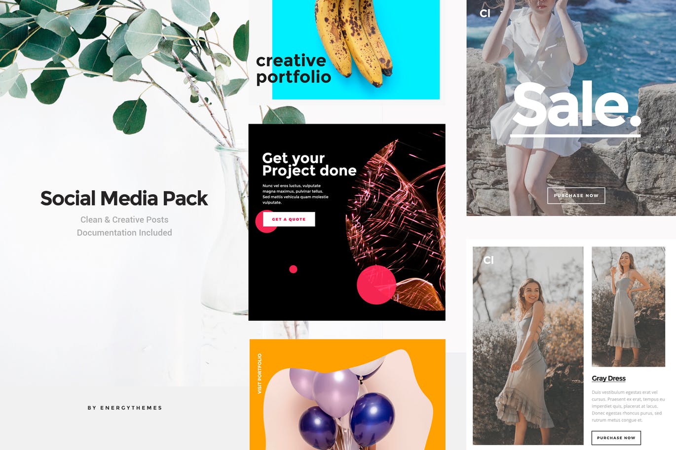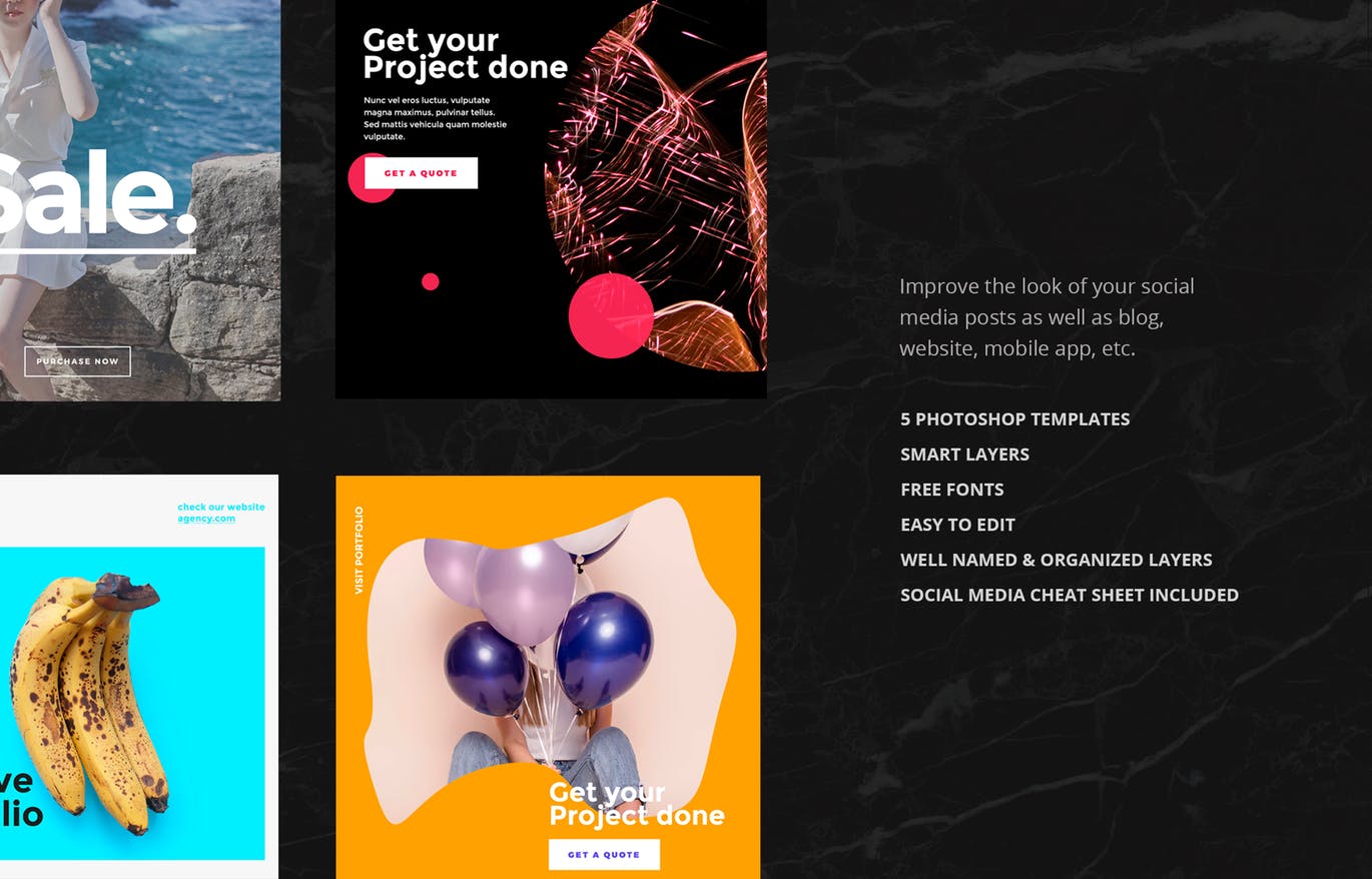 这次老不湿分享的是,时尚高端简约多用途的高品质社交媒体banner海报设计模板集合,改善社交媒体页面以及博客,网站或移动应用的外观和感觉。这个包包括5个本地为Instagram设计的模板,但也包括不同社交媒体帖子大小的文件。每个都很容易编辑和自定义。