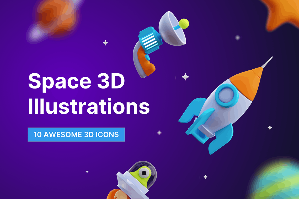 空间三维插图包含10个图标。您可以根据需要轻松地创造性地编辑、更改颜色和修改图标。