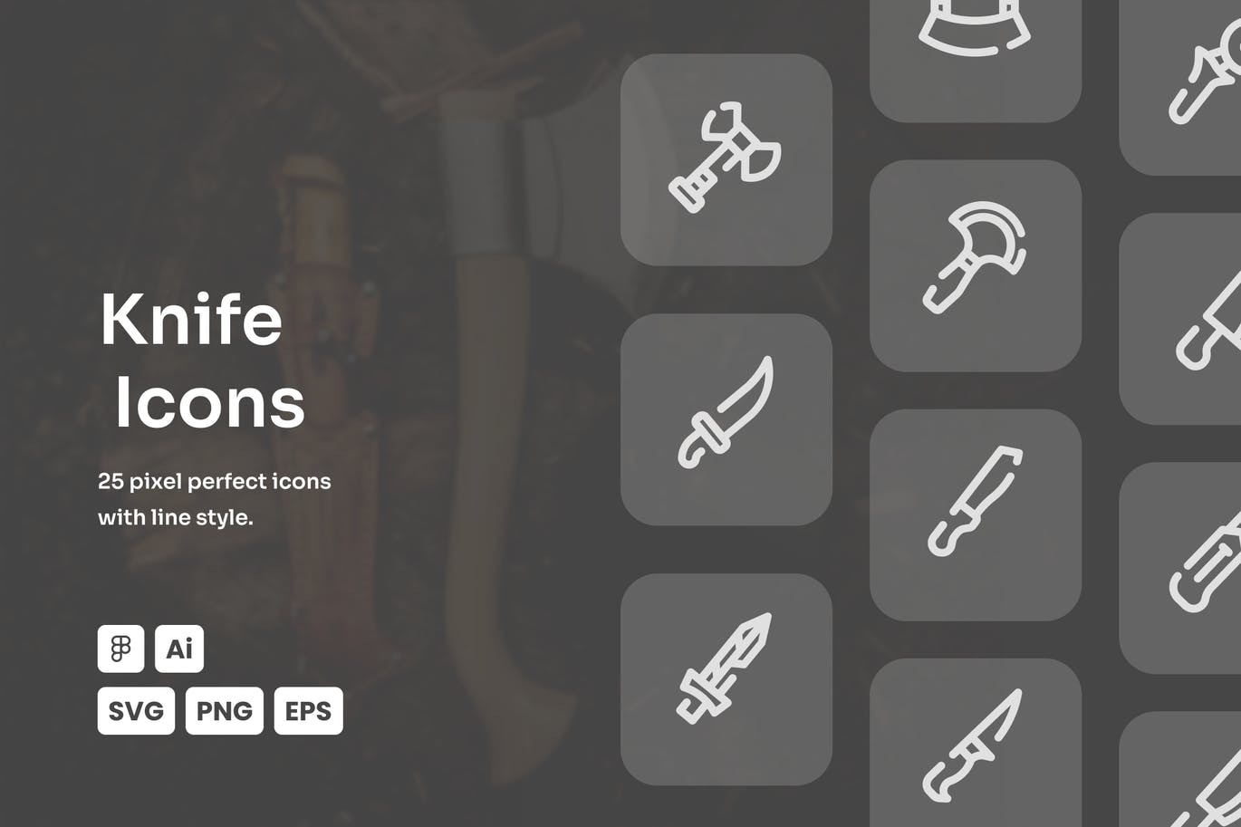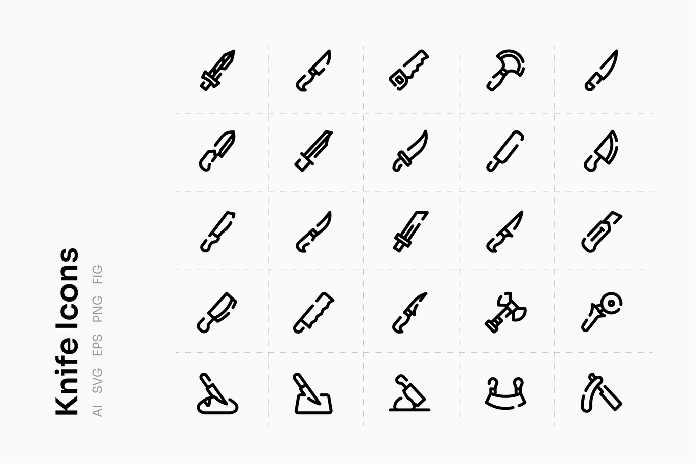 像素完美刀图标集可用于所有用途,如网站、横幅、海报、UI设计等。
