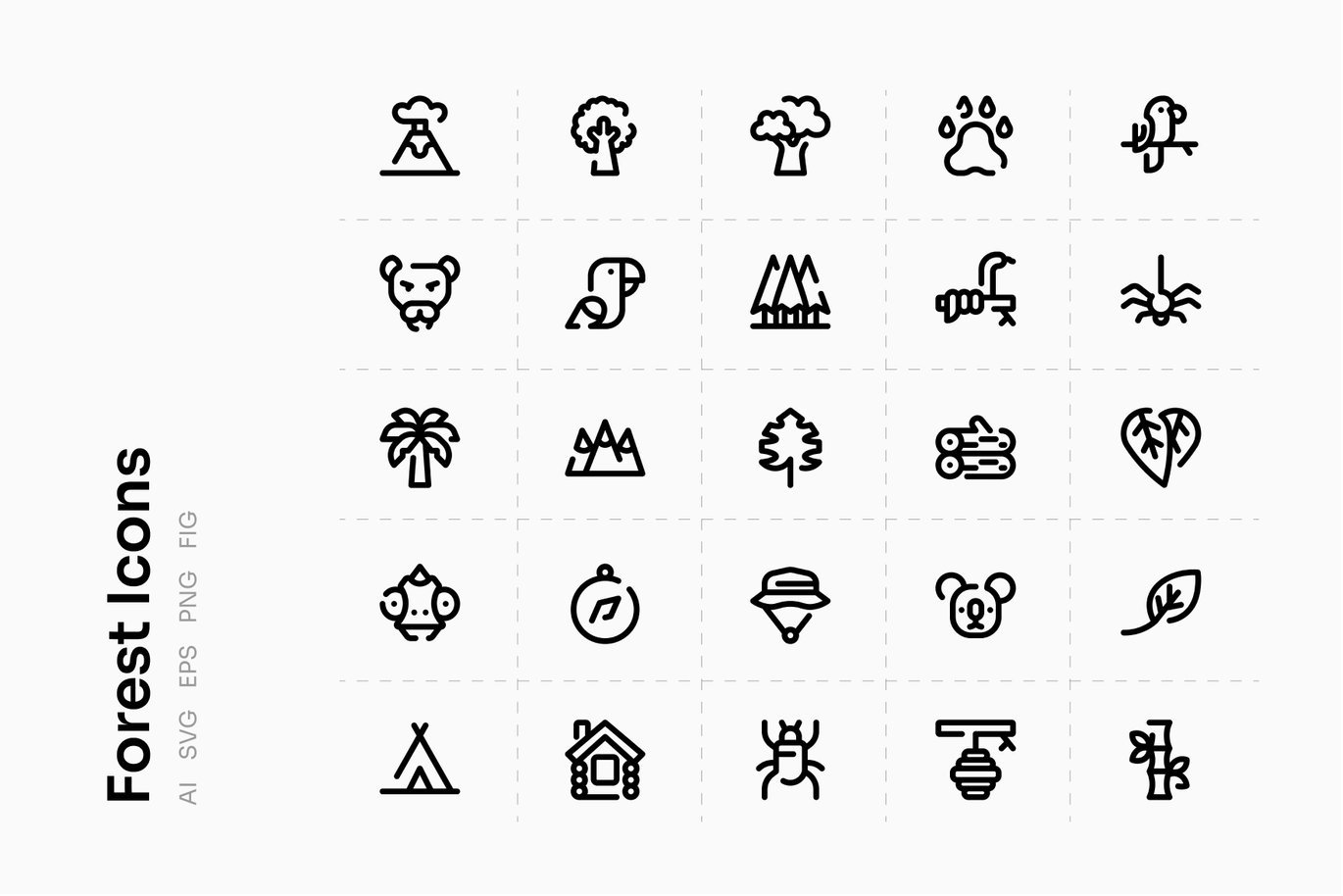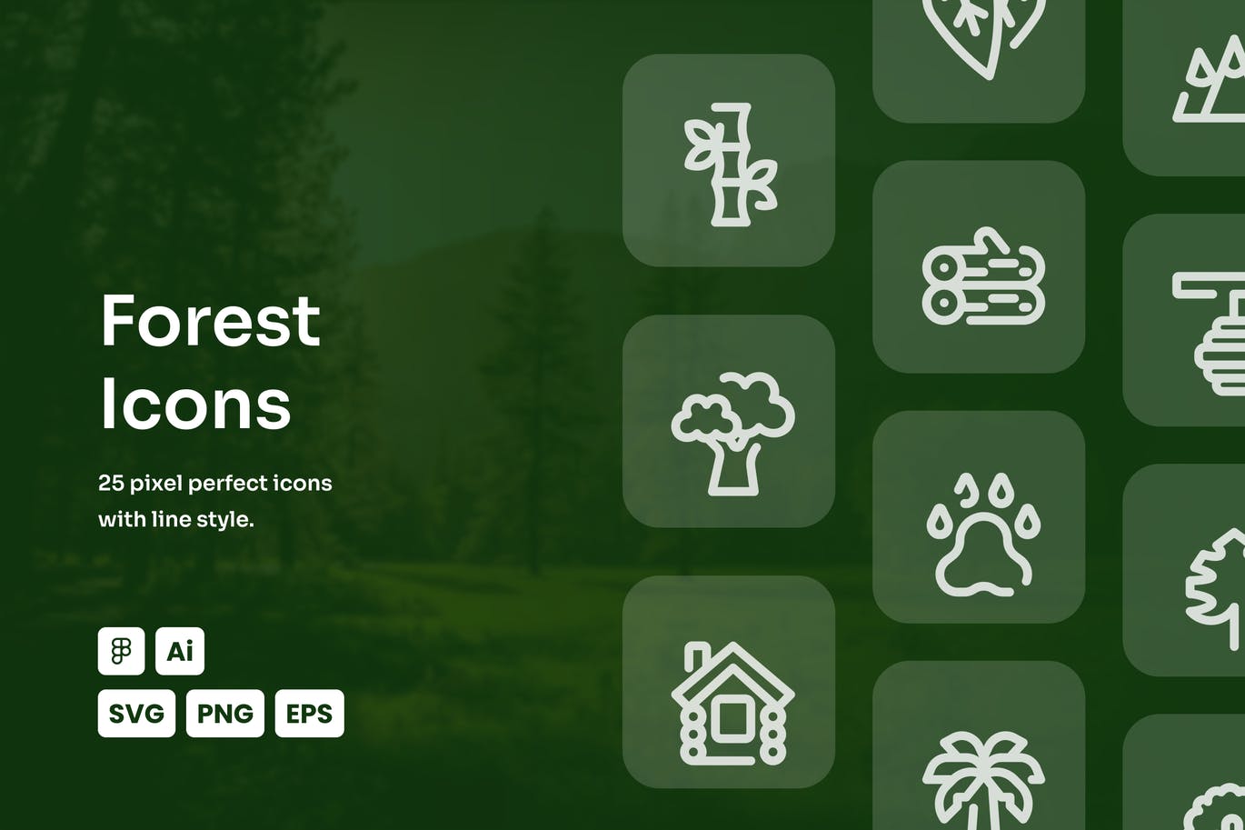 像素完美森林图标集可用于所有用途,如网站、横幅、海报、UI设计等。