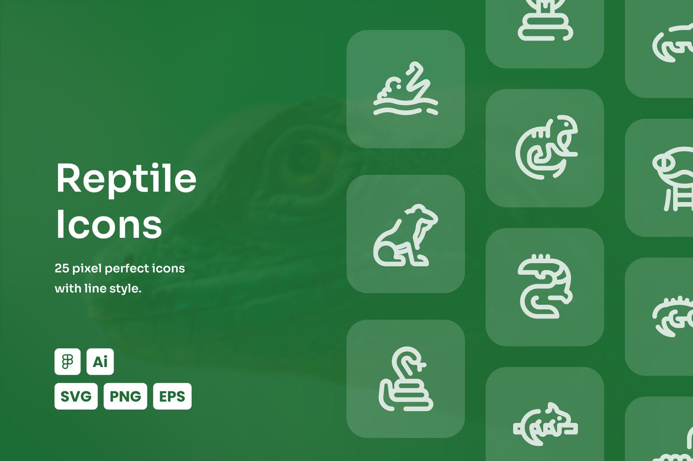 像素完美的爬行动物图标集可用于所有用途,如网站、横幅、海报、UI设计等。