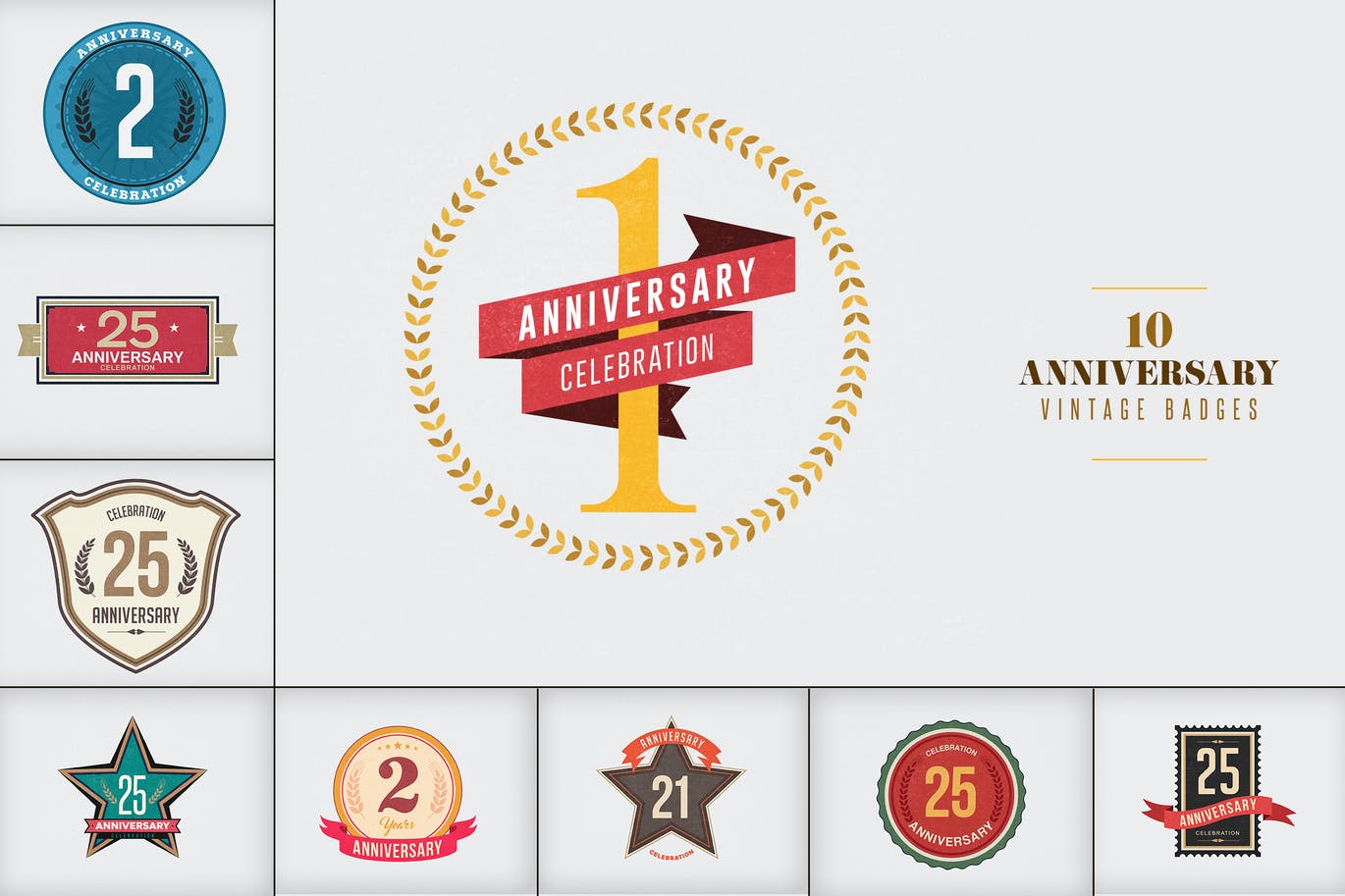 这次老不湿分享的是,高品质的复古风格房地产周年庆徽章标签图标设计模板集合-PSD,JPG,100%Photoshop矢量图层