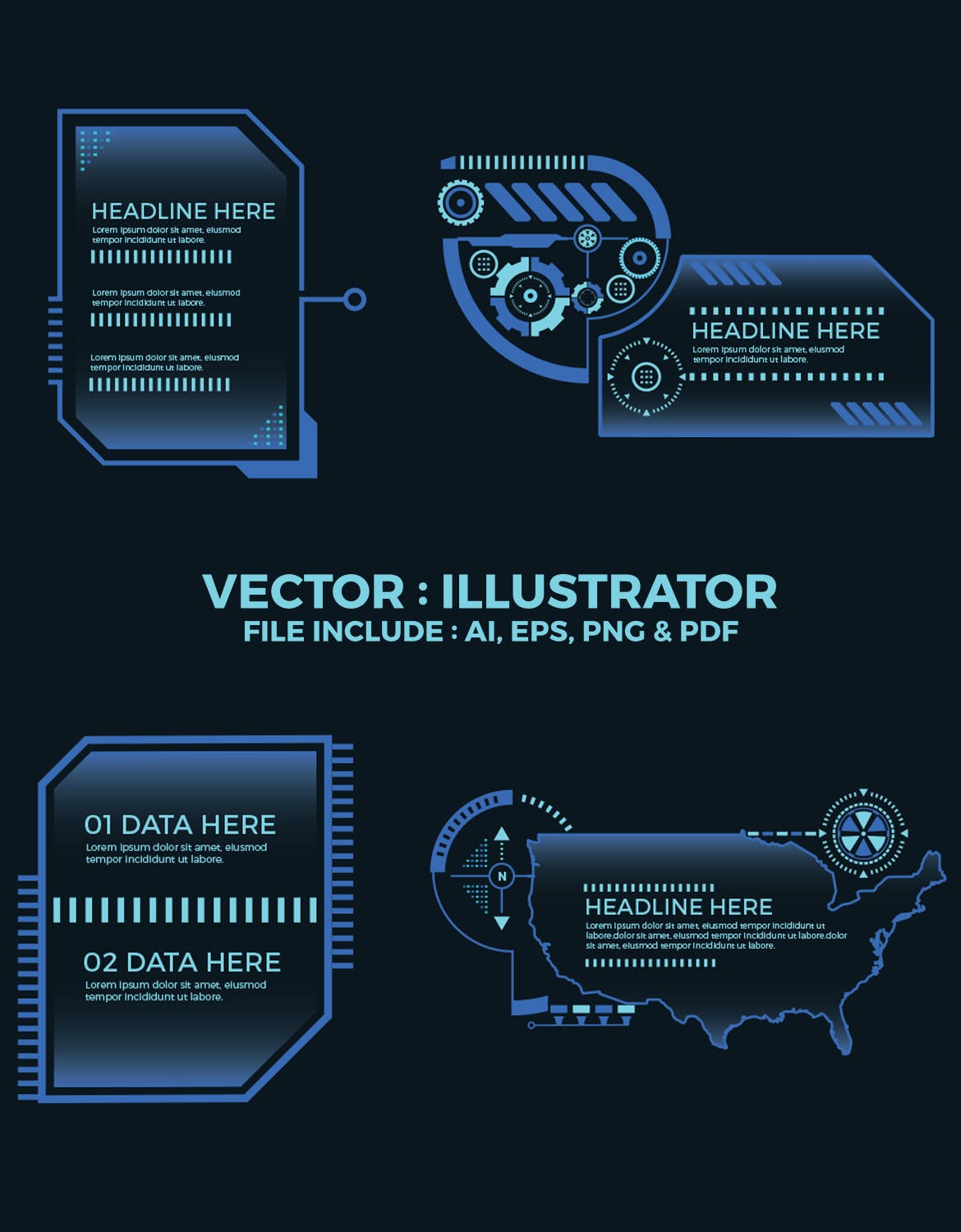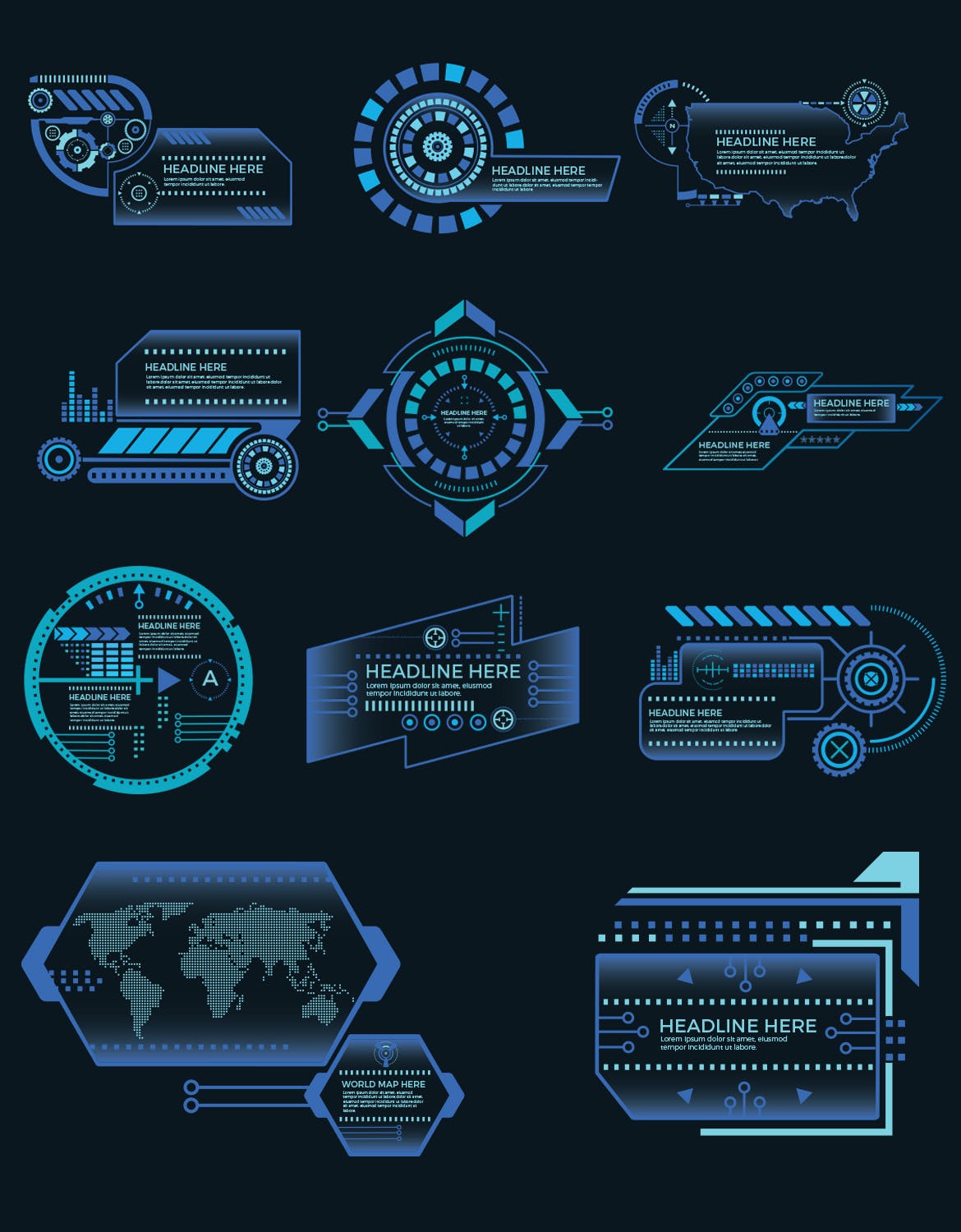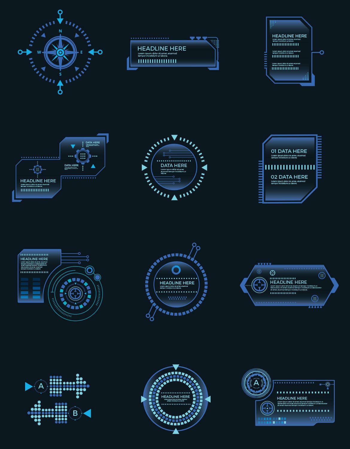 高科技界面元素设计,线条图标设计,适用于科技方面设计展示。