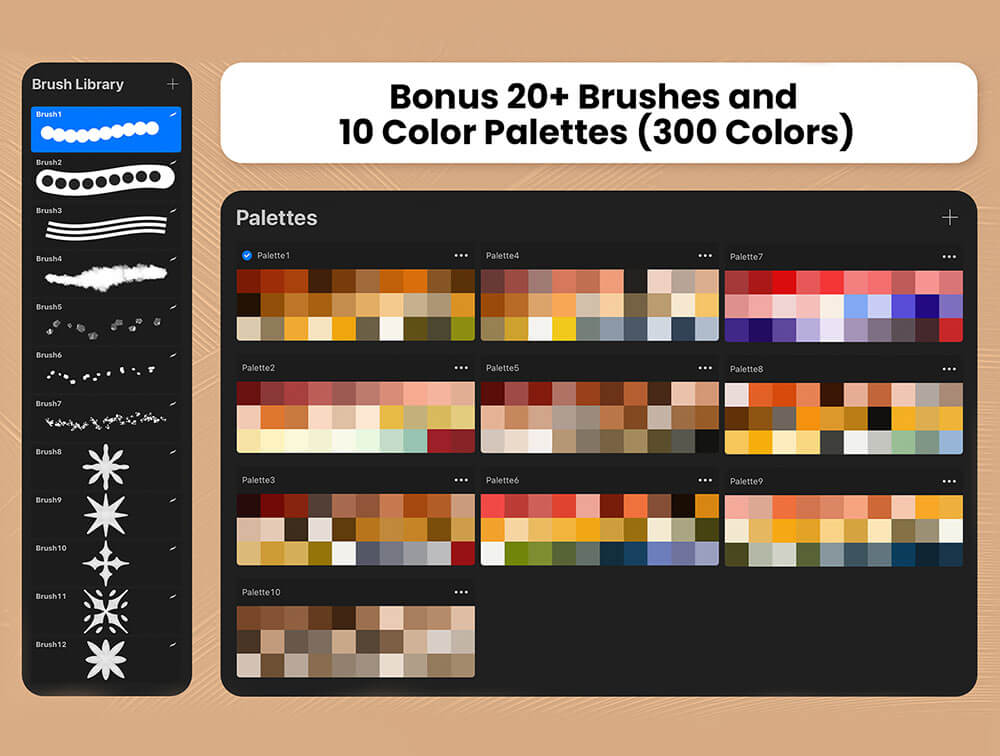 可用于 Procreate 5.2 和其他 3D 软件。这些画笔和色板适用于 iOS APP Procreate。