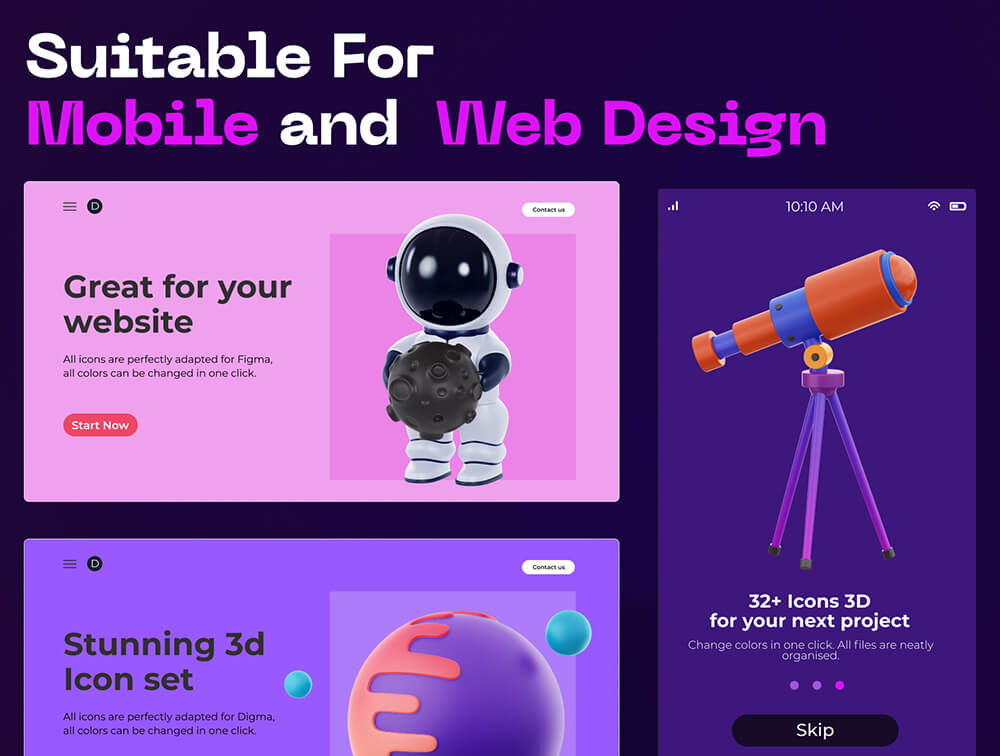 这是一组适用于任何产品的自定义3D图标。这个包将完美地补充您的应用程序、演示文稿、网站等的设计。该套件包括以下图标:小行星、宇航员、行星、彗星、太阳系、太空船等。使用这些手工制作的图标创建令人惊叹的独特项目,在 Figma 中轻松编辑,并在 Blender 中完全自定义。