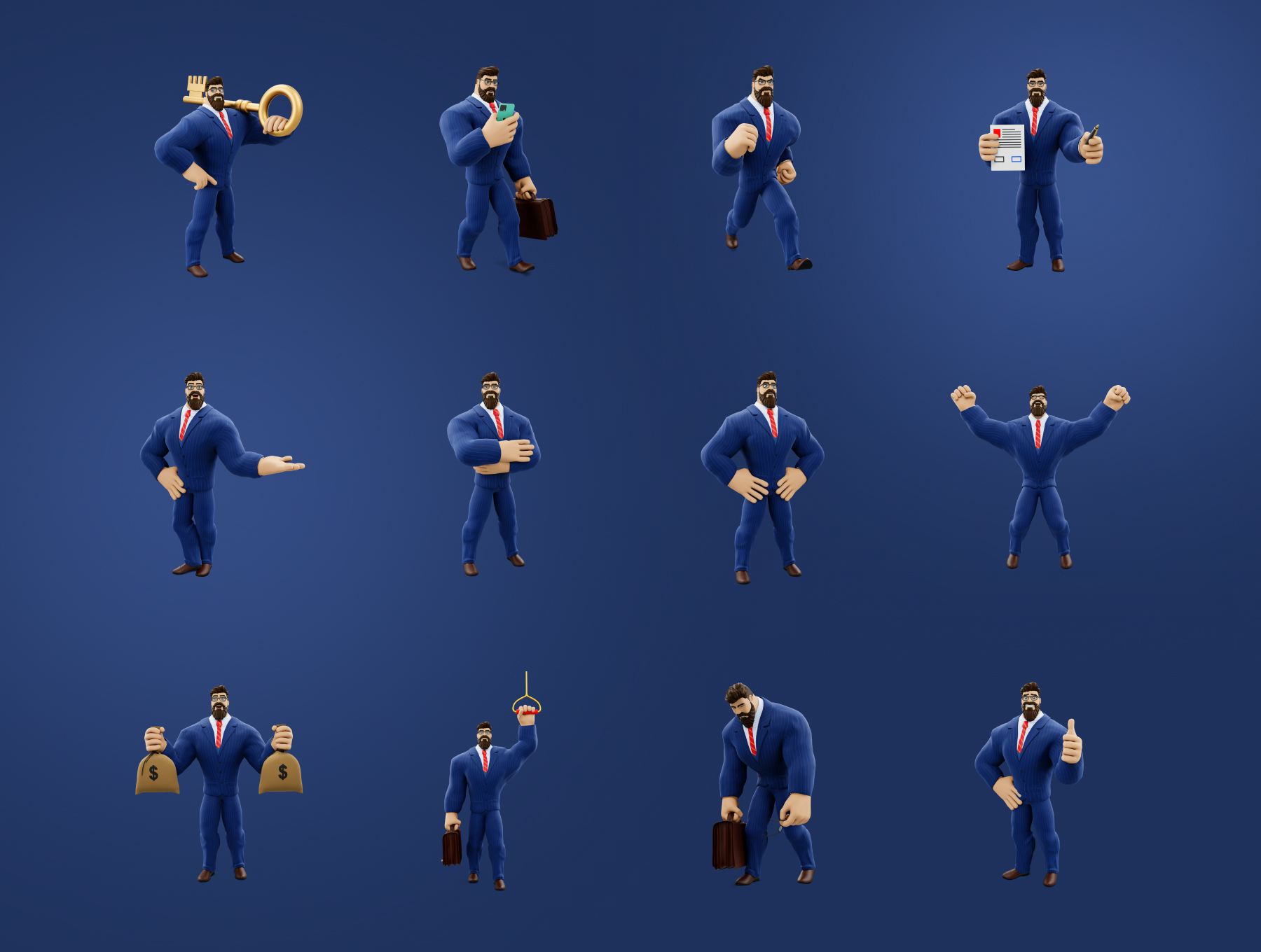 这是一款设计精美的 3D 角色模型。非常适合企业、初创公司和专业人士。随着 3D 建模在游戏以及娱乐和教育系统中使用的增加,这是一组业务驱动的 3D 角色模型。旨在为各种业务类型创建交互式表示。