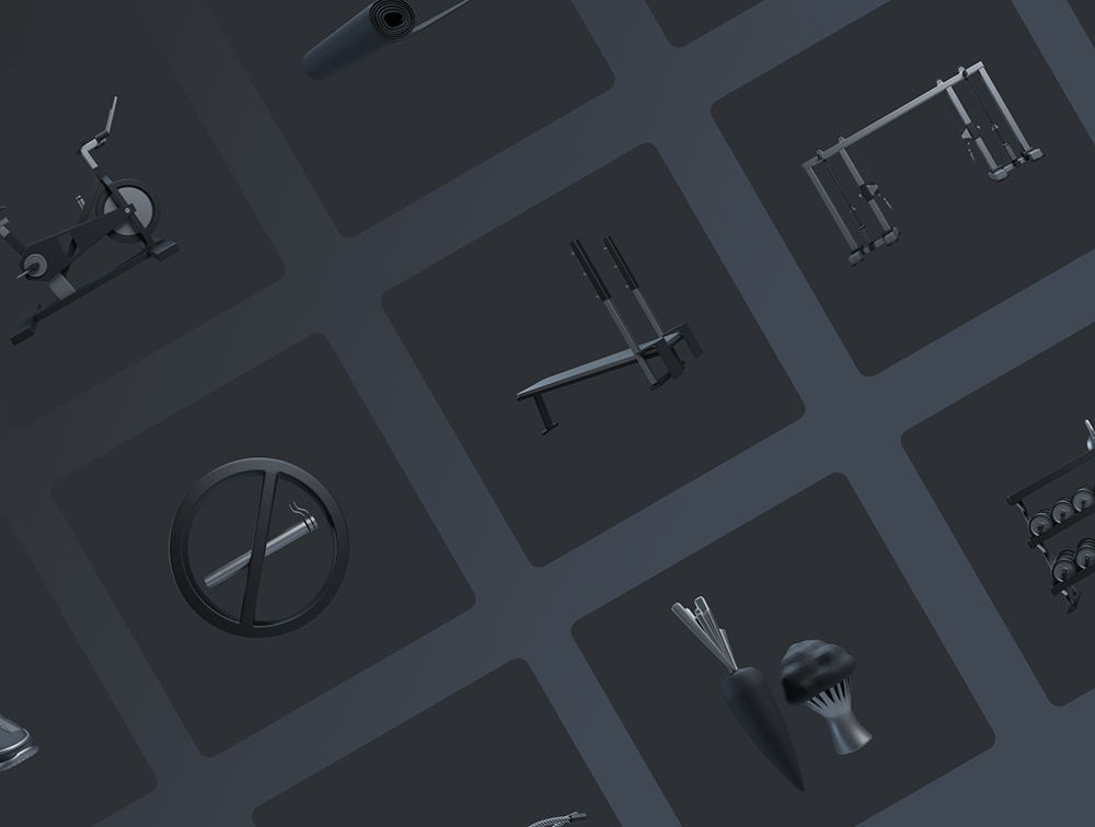 多层和多摄像头角度的高级健身 3D 图标包非常适合使与医疗保健、健身房或健身行业 UI UX 创意相关的任何设计看起来出众。