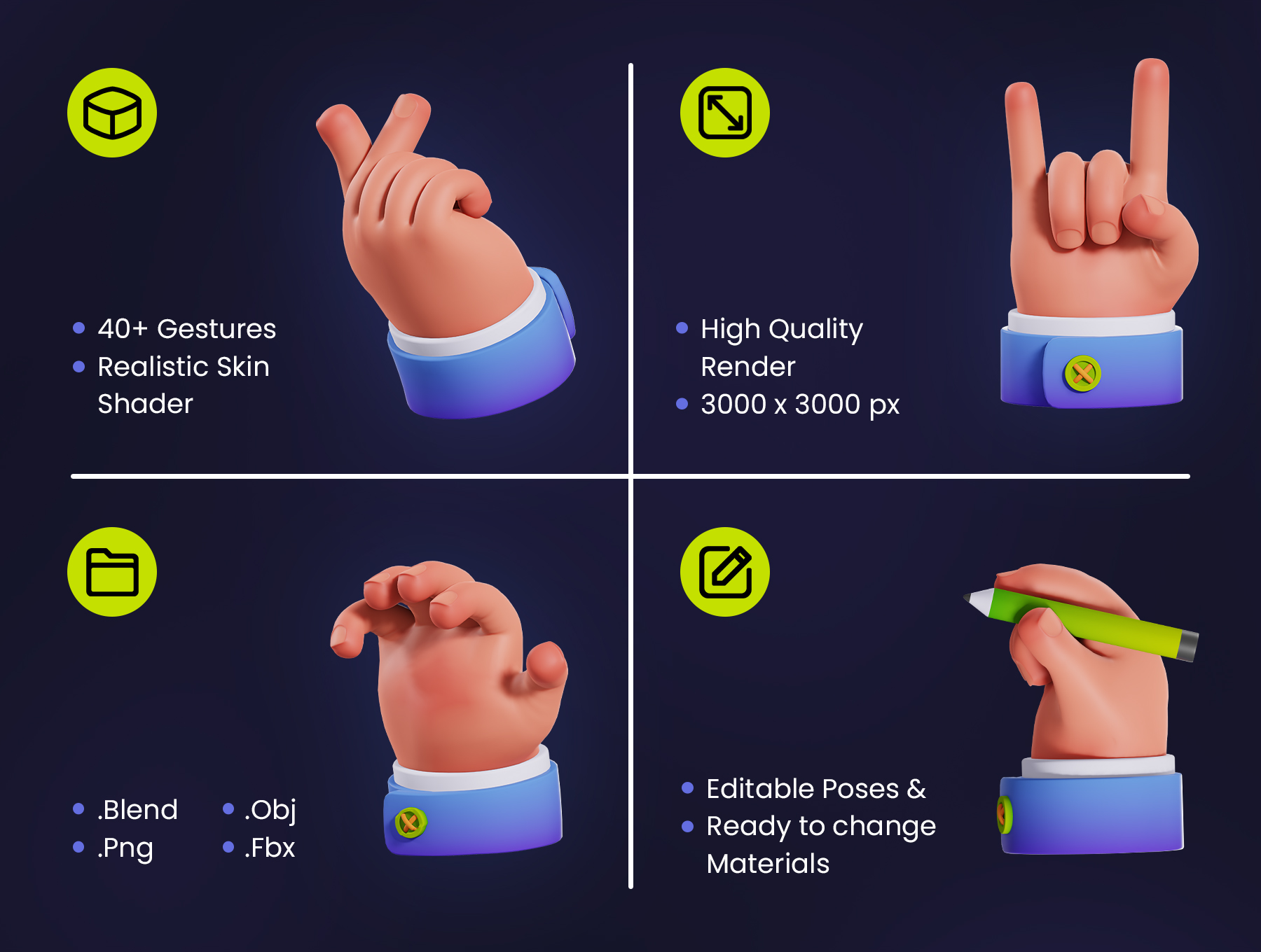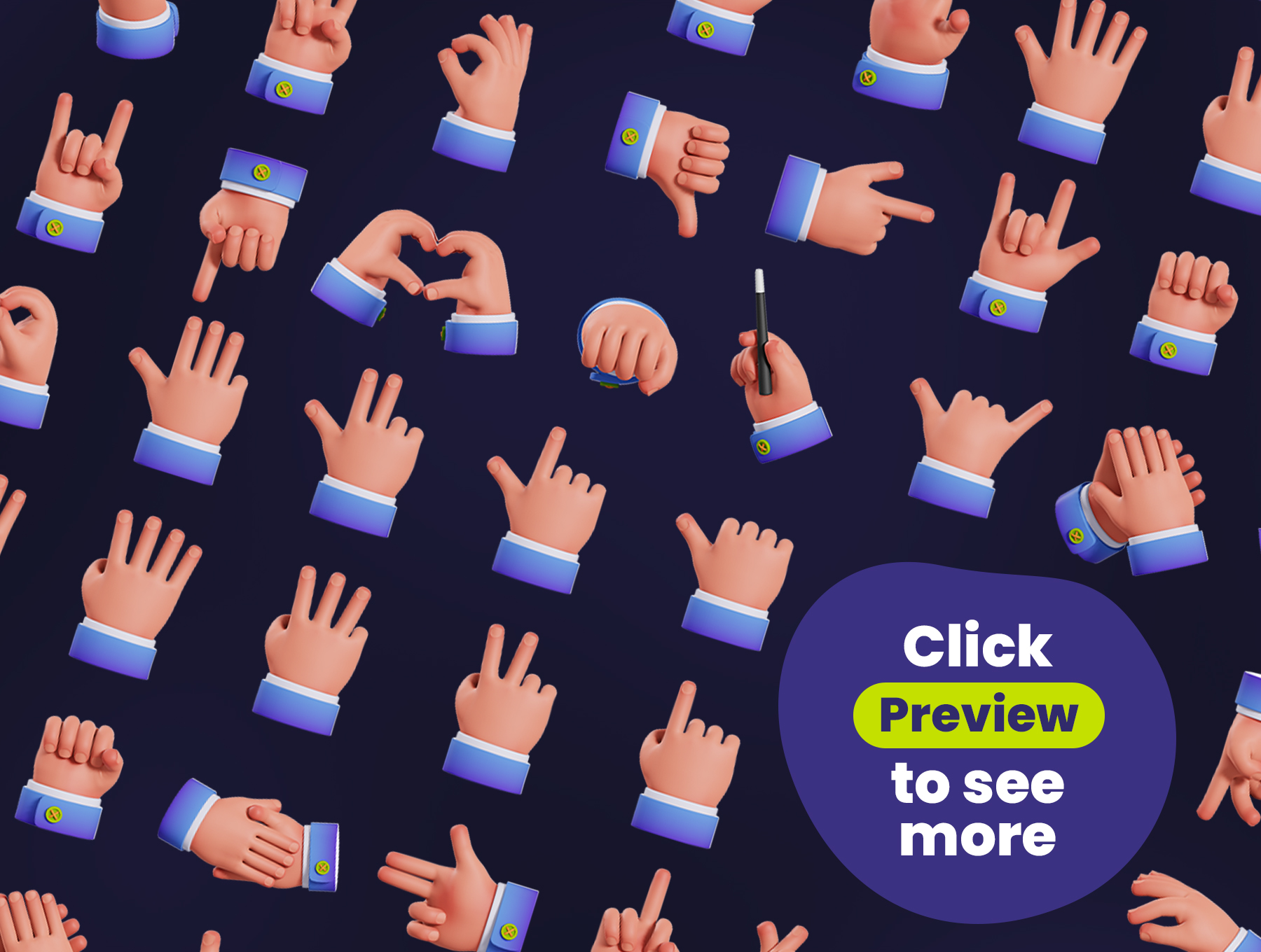 手势3D插画可用于设计需求、动画、网页设计、UI 设计、演示幻灯片、海报等。非常适合完成您的设计。