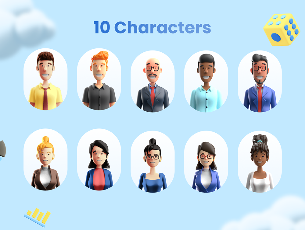 10 个 角色 + 21 个不同的姿势